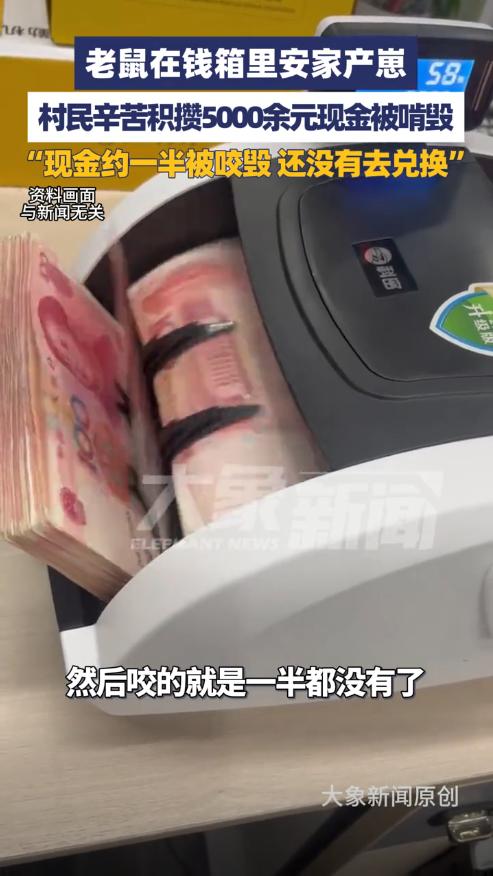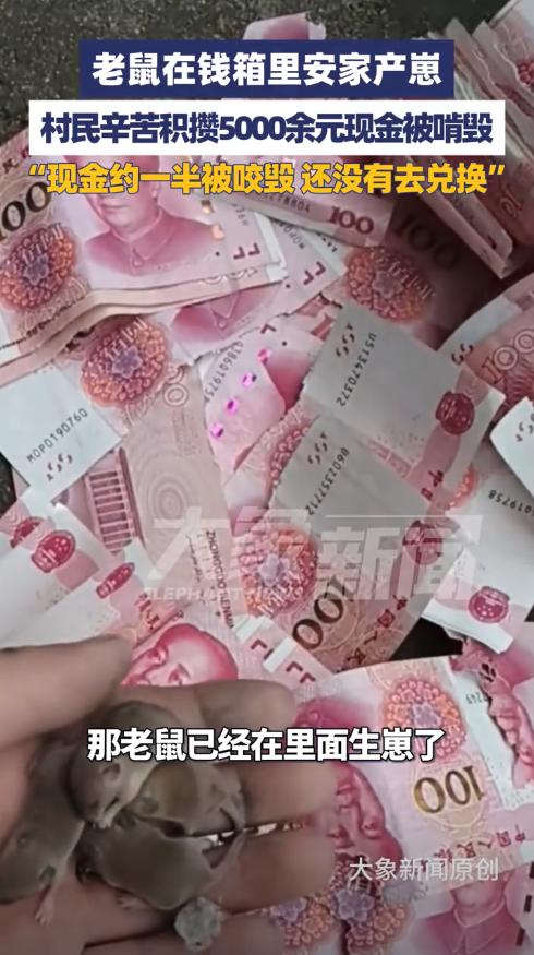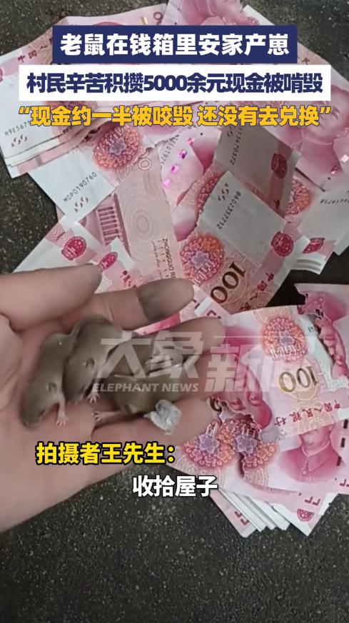 担心的事还是发生了!9月28日,河南驻马店,一男子在家中干活时,意外找到了一个装钱的箱子,结果听到里面有老鼠的叫声,打开箱子后发现有一窝鼠崽,5000多元现金被老鼠咬毁了一半,不知道还能不能兑换。网友:老鼠真是太可恶了! 河南驻马店一位老人遇到了件糟心事,她辛苦攒下的5000多块钱,被老鼠啃得七零八落,有的缺了角,有的撕开了大口子。 这笔钱存放的时间太久了,老人自己都记不清放在哪儿,钱是她年轻时一点点攒下来的,甚至包括出嫁前的私房钱,对她来说意义非同一般。 9月28日这天,老人的侄子王先生来帮忙刷地坪漆,他挪动一个角落里的旧箱子时,透过缝隙看到里面好像有钱,还听到奇怪的吱吱声。 打开箱子一看,王先生惊呆了,箱子底下竟然有一窝刚出生的小老鼠,旁边散落着被啃坏的钞票。有些百元大钞只剩下一半,有些边角全没了。 老鼠为什么不去找吃的,偏偏要啃钱呢?这跟它们的生理特点有关,老鼠是啮齿类动物,牙齿会一直不停地往外长,必须经常啃东西来磨牙。 如果不磨牙,牙齿长得太长就会影响进食,甚至刺穿自己的嘴巴,所以老鼠见到什么都想咬一咬,木头、塑料、电线、纸张都不放过。 钞票的材质对老鼠来说正好合适,现在的人民币虽然不是纯纸张,而是棉麻纤维制成的,但硬度适中,方便老鼠磨牙,加上这个角落安静偏僻,老鼠就在这儿安了家。 王先生说,他打算陪姑姑去银行试试能不能兑换,但这些钱损坏得比较严重,也不知道银行能换回来多少。 按照中国人民银行的规定,残损的人民币能不能换,换多少,主要看票面还剩下多少,如果纸币剩余面积超过四分之三,而且图案文字能连上,可以按原价全额兑换。 如果剩余面积在二分之一到四分之三之间,只能换一半的钱,要是缺失部分超过一半,或者防伪特征看不清了,银行就不给换了。 从王先生拍的视频看,这些钱有的确实损坏严重。特别是那些被撕成两半的,能不能兑换还真不好说,得拿到银行让工作人员仔细鉴定。 这件事也提醒大家,特别是家里有老人的,在家存放现金要格外小心,老人习惯把钱藏在各种角落,时间一长自己都忘了,结果容易出问题。 这事儿一出来,评论区可真是炸开了锅!我帮你梳理了一下,网友们的看法主要分这么几类: “同病相怜”型:分享自家惨痛经历 好多网友一看这新闻,立马想起了自己家或身边人的类似遭遇。 “我家也这样!”:有网友说:“我爷爷以前把钱藏在谷仓的麻袋里,结果比这还惨,直接被老鼠当成窝,掏出来全是碎纸片,真心疼死了。” 还有人分享:“我们村有老人把钱塞进不穿的胶鞋里,时间一长自己忘了,家里人打扫卫生差点给扔了,幸好及时发现。” 看来老人们藏钱的心思,真是猜不透啊。 “科普解惑”型:分析老鼠为啥跟钱过不去 大家除了心疼钱,最好奇的就是:老鼠又不花钱,为啥专啃钞票? “磨牙是刚需”:有懂行的网友解释:“老鼠属于啮齿类动物,牙齿会不停生长,必须靠啃东西来磨牙,控制长度。纸币对它们来说,硬度正合适,是完美的‘磨牙棒’。” 这么一说,钱被咬还真不是老鼠跟钱有仇,是生理需求惹的祸。 “操心后续”型:最关心钱还能不能换 这是评论区最主流的聲音,大家都替事主着急,想知道损失能不能挽回。 “赶紧去银行问问!”:不少热心肠的网友催促事主:“别拖了,赶紧带上这些碎钱去银行网点,人家有专门的鉴定标准,能换一点是一点,总比全砸手里强。” “存银行最稳妥”:这是最多人的共识。网友评论:“所以说,钱还是存银行保险,有利息还防鼠防盗防霉变,老一辈省吃俭用攒下的钱,因为存放不当没了,太可惜了。” 也有网友给出务实建议:“如果实在想在家放点现金,最好用密封的金属盒子或玻璃罐装起来,放在干燥的地方,而且别忘了定期查看一下。千万别把所有鸡蛋放一个篮子里,分散放风险小点。” 你对这件事怎么看?你家老人有习惯在家藏现金吗?你有什么好办法能既尊重他们的习惯,又能确保钱财安全呢?欢迎在评论区分享你的故事和妙招! 信源:齐鲁壹点