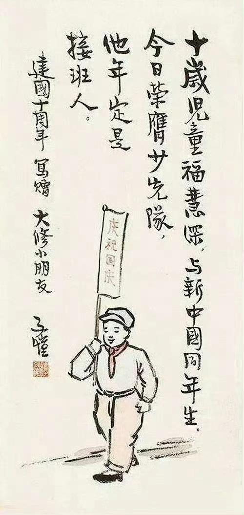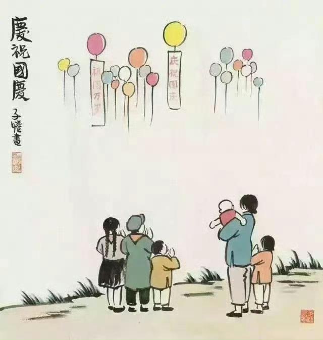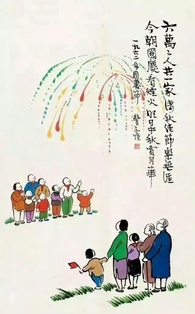 丰子恺的画里,藏着最暖的国庆味🇨🇳 你看丰子恺笔下的山河 是孩童追着红