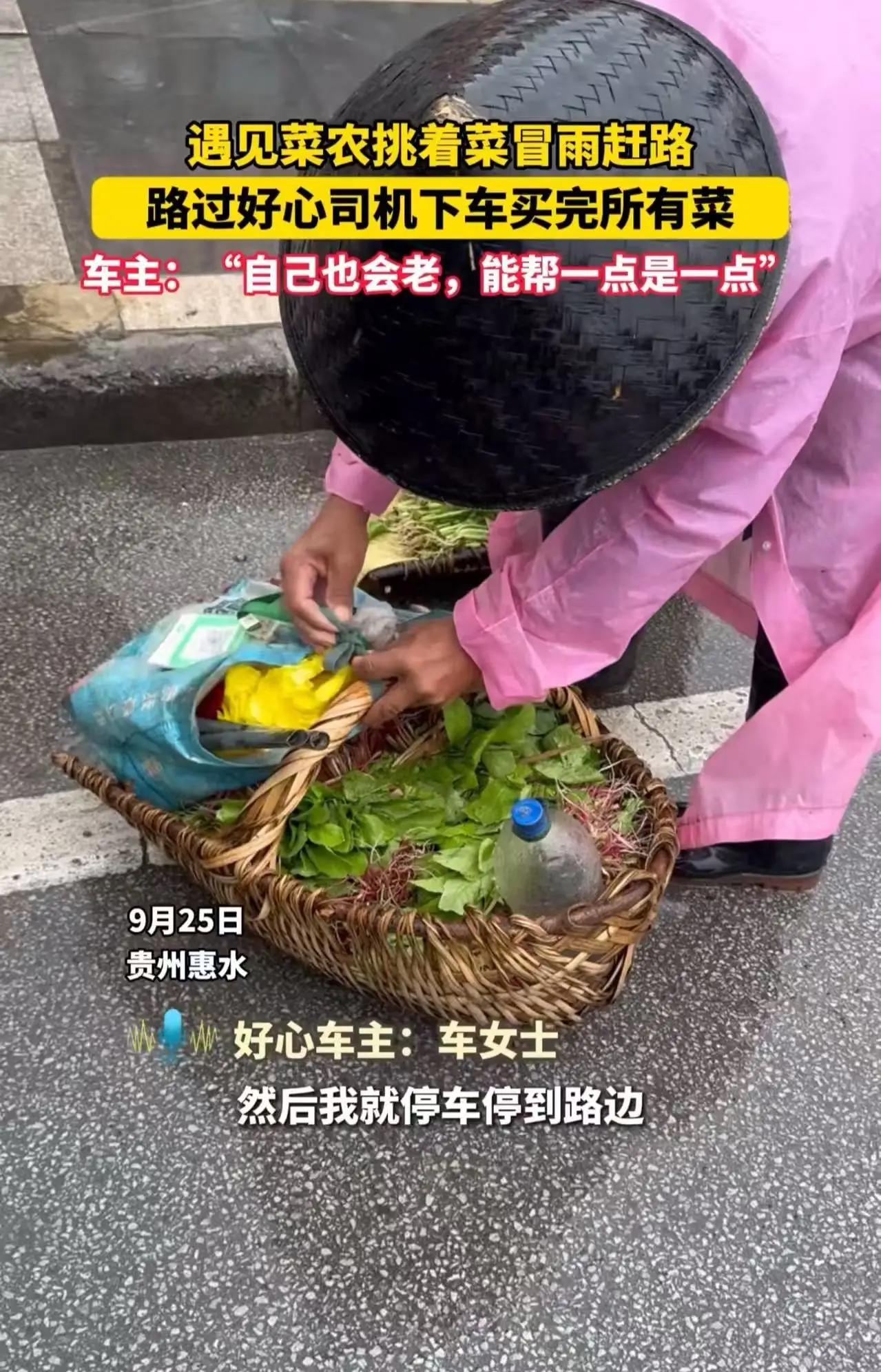看哭了!贵州惠水的这个故事,瞬间温暖了无数人的心。一个普通的雨天,一场平凡的相遇,却折射出人性最纯粹的善良与温情。或许在这个快节奏、功利至上的时代,我们都在奔波追逐,却忽略了身边那些最需要帮助的人。而这一幕,却让我们重新相信,善良从未远离,只要愿意伸出手,就能点亮他人的生命。 那天,天空乌云密布,雨点如同断线的珠子,密集而无情。菜农挑着满满一车新鲜的蔬菜,步履蹒跚地走在泥泞的乡间小路上。身形瘦弱,一瘸一拐,似乎每一步都耗费着极大的力气。而就在这个时候,一辆车缓缓停下,从车里走出一位女司机。她没有多说什么,只是看见菜农的艰难,毫不犹豫地走了过去。 “你这菜都买了?”菜农有些惊讶,眼中满是疑惑。 “全部买了。”女司机微笑着,“我知道你们不容易,雨天还要挑着菜走这么远,真是辛苦了。你就不用再担心卖不出去,我帮你全部买了。”她的话语简单,却像一股暖流,瞬间融化了菜农脸上的疲惫。 更令人动容的是,女司机看到菜农的脚步不稳,主动掏出手帕帮他擦了擦额头的雨水,轻声说:“你别着急,路上小心点。”那一刻,仿佛所有的喧嚣都变得微不足道,只剩下人间最真挚的善意。 网友们纷纷被这份温暖感动,留言里满是点赞和感叹:“这才是真正的善良,简单而纯粹。”“在这个世界上,善良永远不会过时。”更有人说:“这样的善举,会让这个社会变得更美好。” 而我想说,这样的故事,值得每一个人去思考。我们是否也能在日常生活中,像那位女司机一样,哪怕只是一点点的善意,也能成为他人生命中的一束光?或许,我们都曾在某个瞬间被陌生人的善意温暖过,也都可以成为那个人,去温暖更多的人。 有人说,善良是一种责任,也是一份力量。它不需要轰轰烈烈的行动,只要在你力所能及的范围内,伸出援手,传递温暖,就能让这个世界变得更加美好。或许,你我都可以从这个雨天的故事中汲取力量,学会在平凡中坚持善良。 这不仅仅是一个简单的买菜故事,更是一面镜子,照出了我们每个人心中的善意与责任。我们都在这个社会的洪流中,扮演着不同的角色。有的人在忙碌中迷失,有的人在困境中挣扎。而那些善良的瞬间,就像雨中的阳光,穿透阴霾,温暖心灵。 所以,下次遇到需要帮助的人,不妨多一份善意。也许,你的一次善举,就能成为别人生命中的一束光。正如那位女司机所说:“我自己也会老,能帮一点是一点。”这句话,简单却深刻,它告诉我们,善良没有年龄,没有距离,只要心中有爱,就能点亮世界。 让我们都成为那个在雨中伸出援手的人吧,让善良成为我们共同的信仰,让这个社会因为我们的善意而变得更加温暖、更加美好。因为,真正的幸福,或许就是在不经意间,给别人带去一份温暖的力量。感人心灵的故事 人间感人的故事