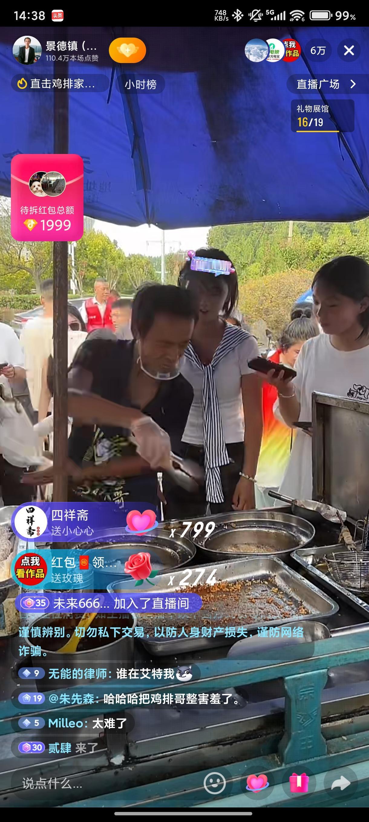 鸡排哥国庆最新情况来了, 节前几天就有人反映到, 鸡排哥已经说累了,口中已经不是妙语连珠了,本来粉丝们已经做好准备了,没想到国庆节当天状态很好,恢复到鸡排主理人的感觉。 国庆节期间,网上多个直播入口,不仅鸡排哥本人在正面直播,连都市现场和景德镇当地几个机位都同步直播,从现场来看,鸡排哥周围有不少的工作人员维持秩序,周边城市的人络绎不绝地来到,吃上一口鸡排倒是其次,很多人都是奔着他的口才来的。 国庆来临前,鸡排哥就已经透露出节日的经营计划,他在周边几个摊位都让自己的亲戚过来帮忙了,多了好几个店也卖起同款鸡排,帮助分流,不得不说,这次景德镇当地对国庆节的准备还是非常的充分,配得上这波泼天的富贵。 也是祝福鸡排哥生意越来越好,这波流量也是他值得拥有的。