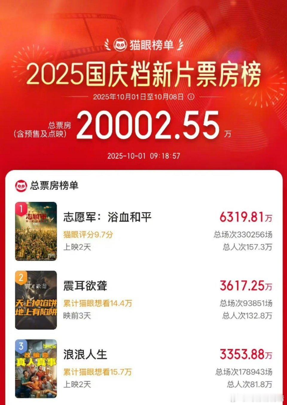 国庆档票房前3 陈飞宇和檀健次电影对打了