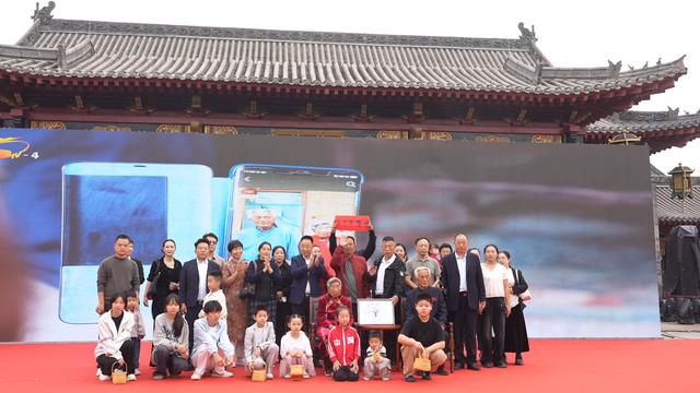 上午8时30分,典礼在温馨的暖场活动中拉开序幕。歌曲《母亲》《万爱千恩》以及戏曲串烧《花木兰+穆桂英》的精彩演绎,提前点燃了现场气氛。而最打动人心的是紧接着“四世同堂”的环节,当白发苍苍的91岁高龄的朱中华一家依次登台,从子女、孙辈到稚嫩的曾孙,四代人的身影瞬间勾勒出一个家族血脉与家风传承的完整脉络,这温馨瞬间,令现场暖流涌动,让“金婚”这一概念不再只是时间的刻度,更成为家庭幸福的具象化。