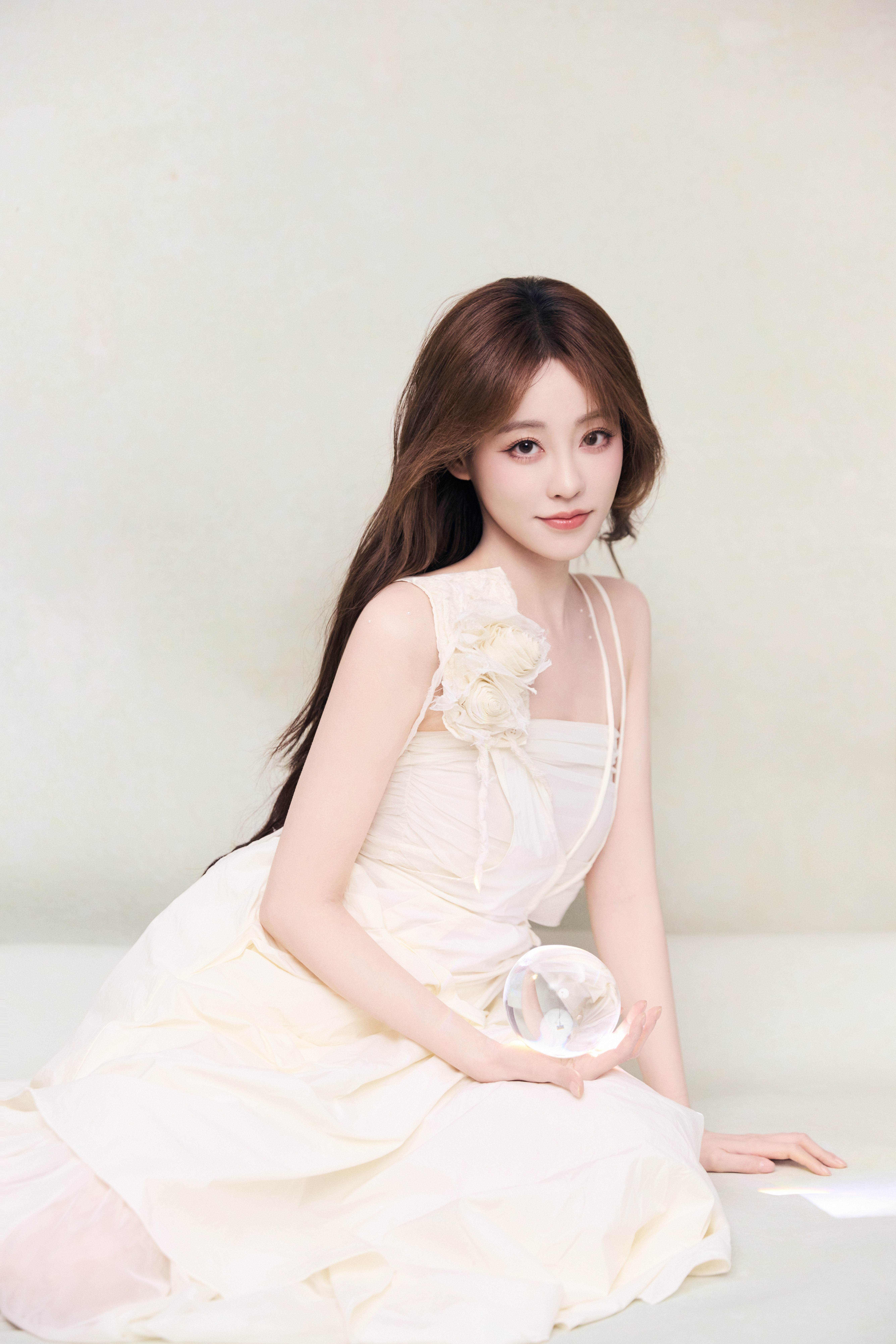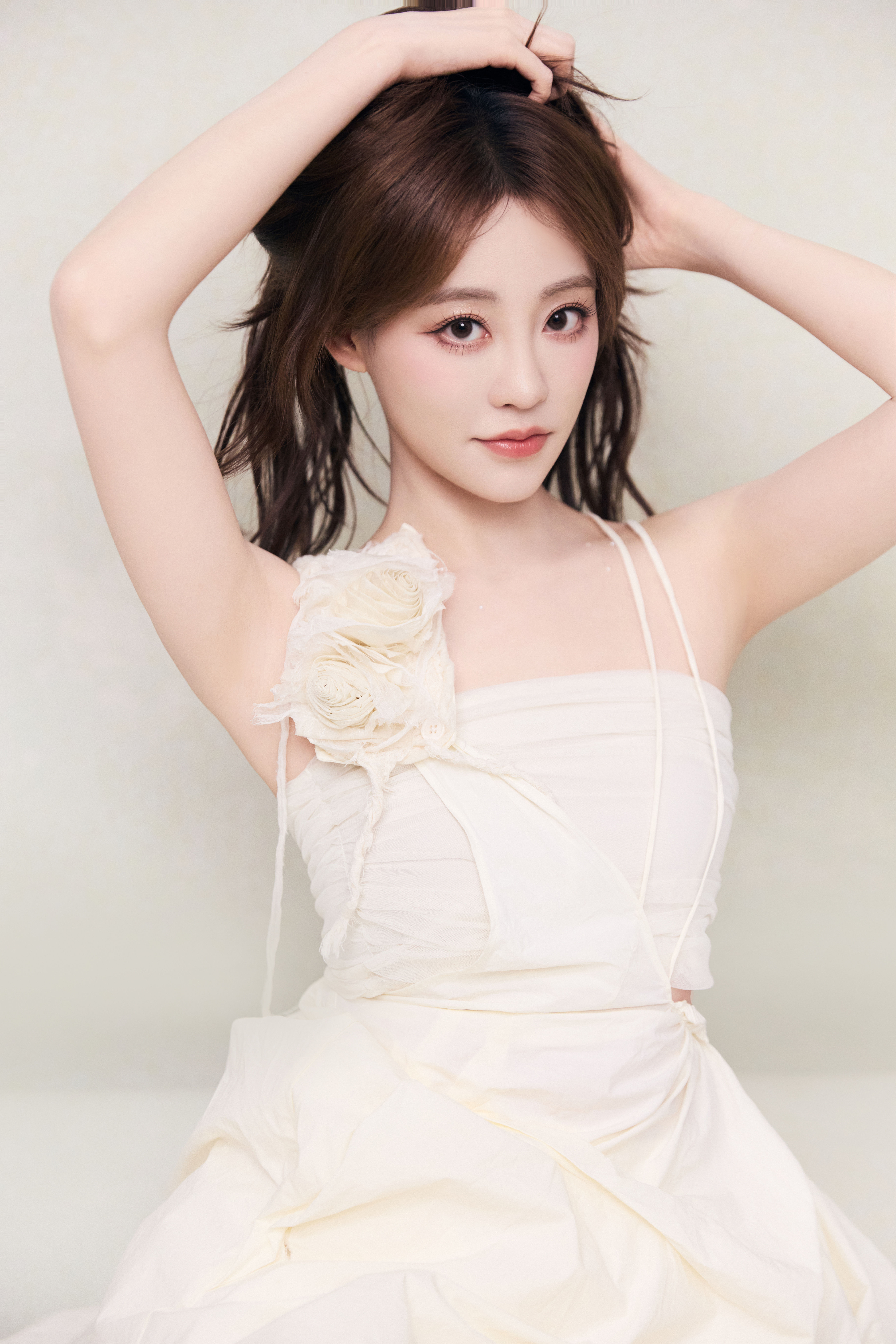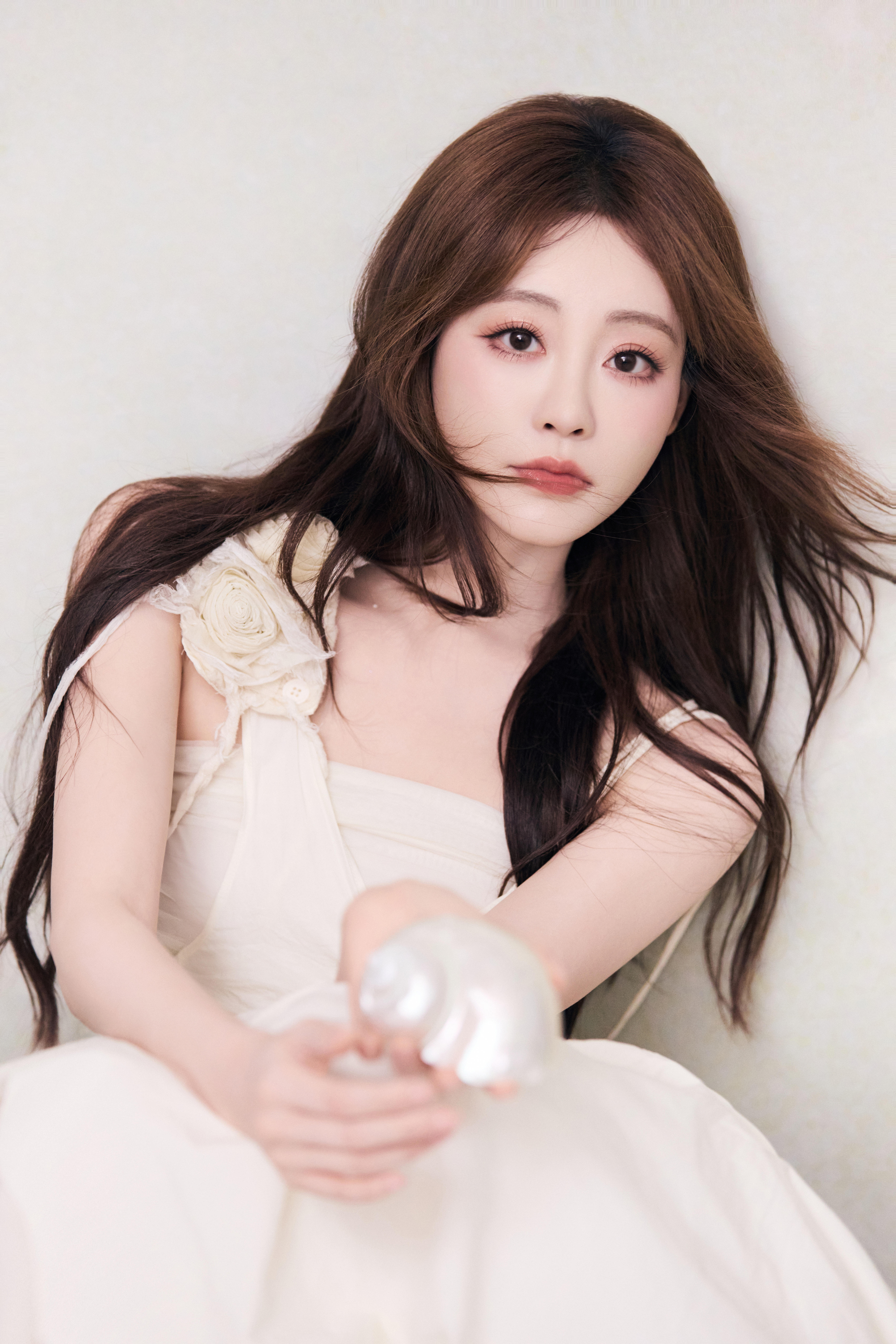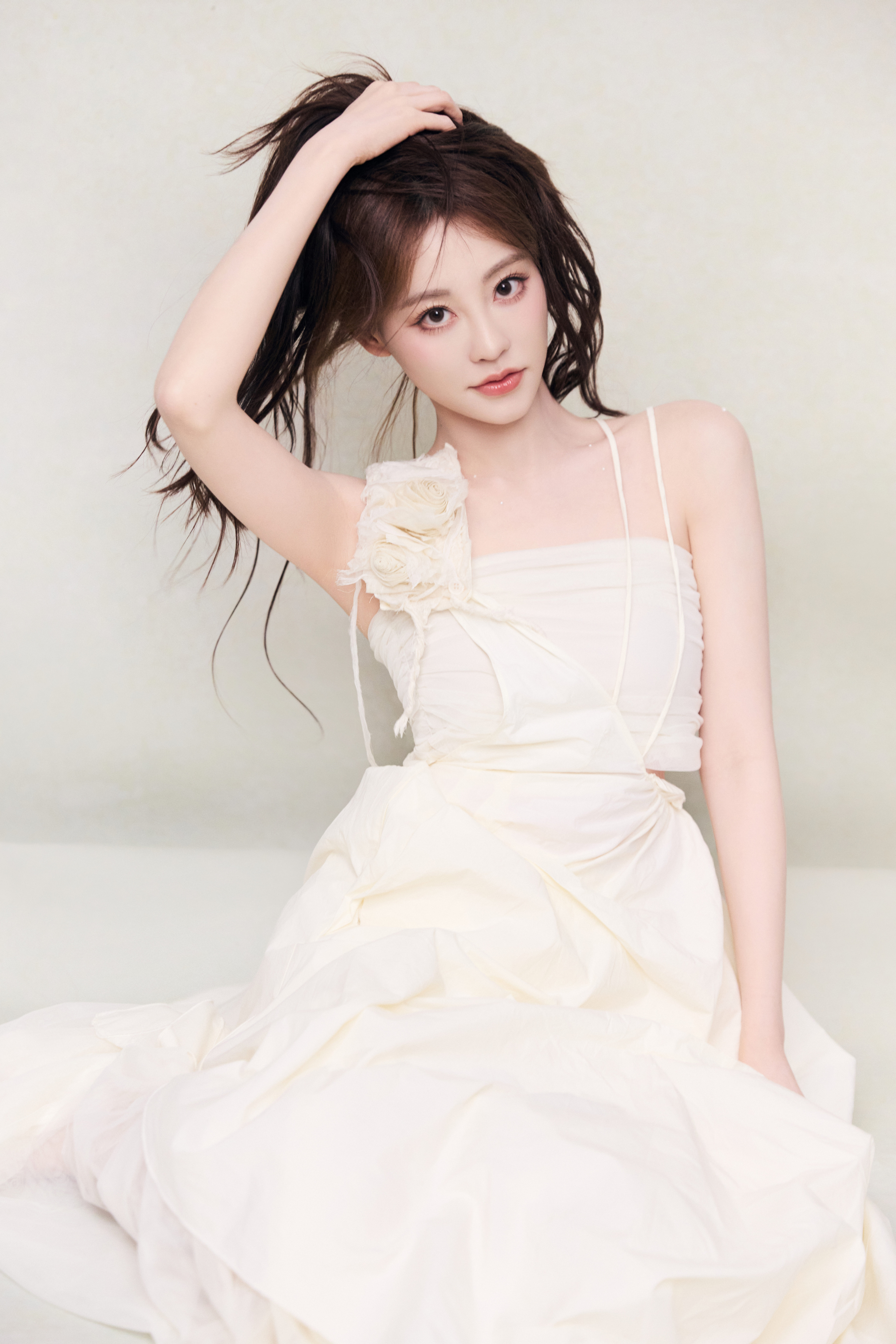 祝绪丹 一袭米白长裙,缀花饰肩,似林间精灵坠入梦境。