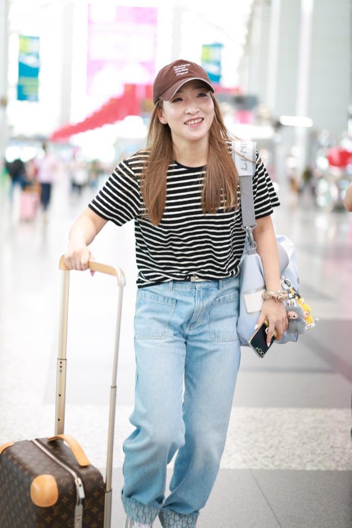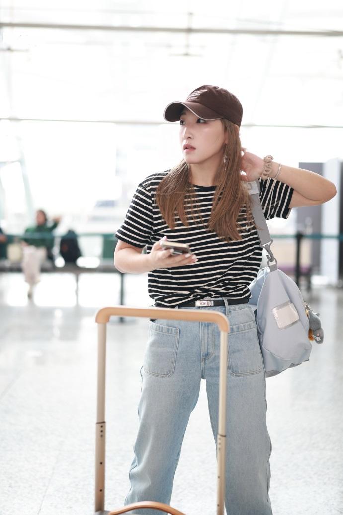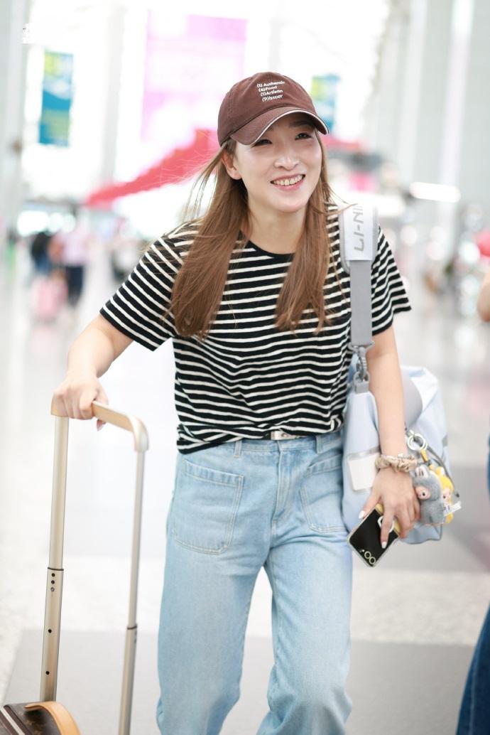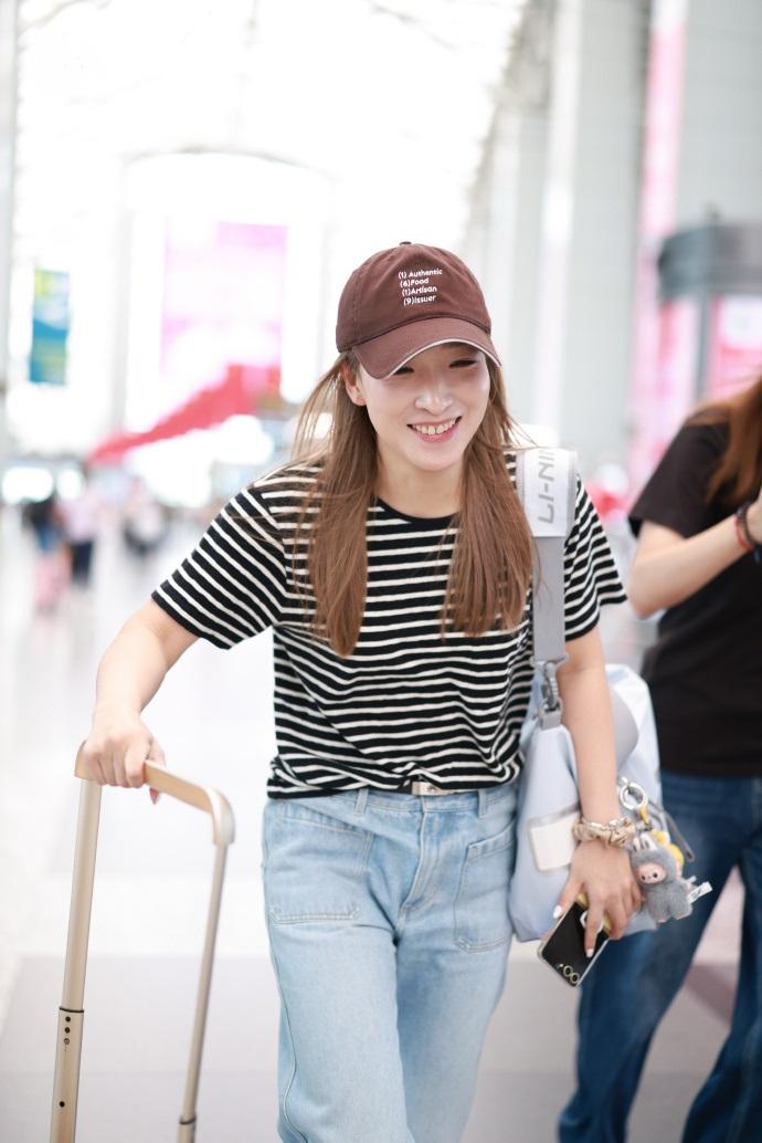 今天刘诗雯现在白云机场,她这次搭配的很有清新时尚感,也显得好年轻。 刘诗雯上身穿漂亮的条纹T恤,下身搭配做旧风格的牛仔裤,凸显出了完美的身材比例。 她脚踩白色运动鞋,头戴咖啡色棒球帽,增添了潮流之美。 刘诗雯留着超美的披肩长发,尽显淑女风情,她还画着精致的妆容,真的好时尚。 她这次特意把T恤扎进裤子中,这样显得更干练,也更有魅力。