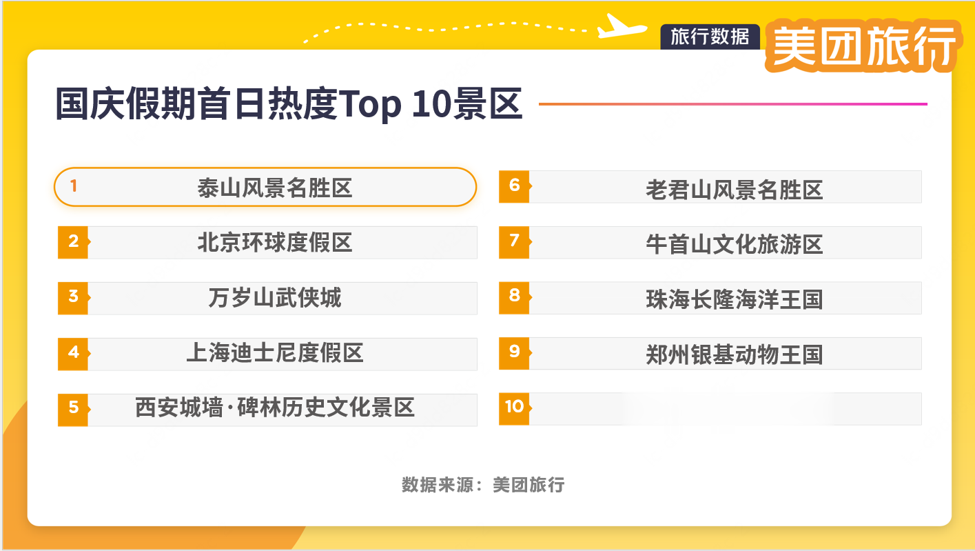 头图为美团旅行发布的国庆假期首日热度Top10景区。