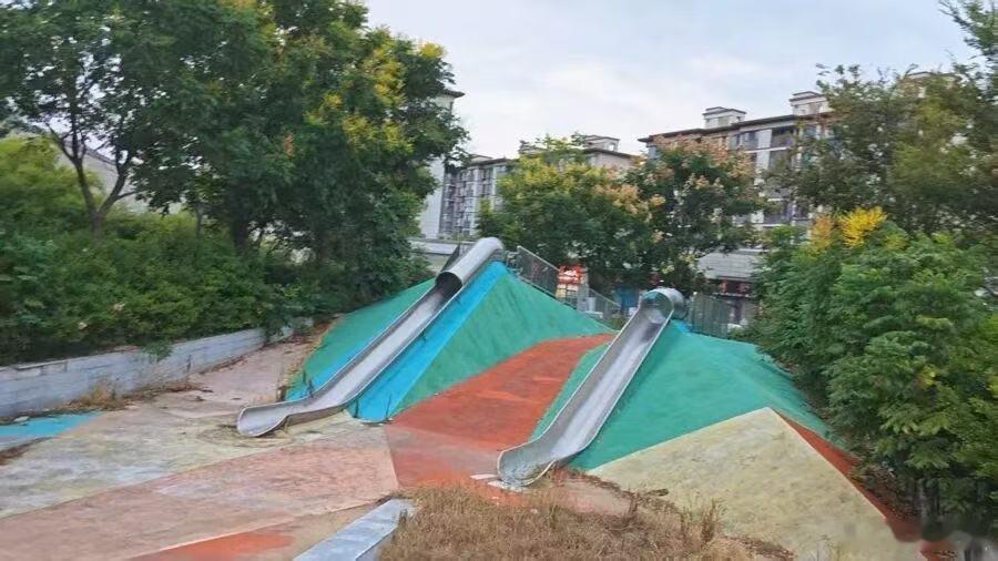 《解放日报》的记者实地看到,小绿地里杂草高达一米多,垃圾遍地,儿童滑梯积满污水,木桥木板翘起,设施尽数废弃。