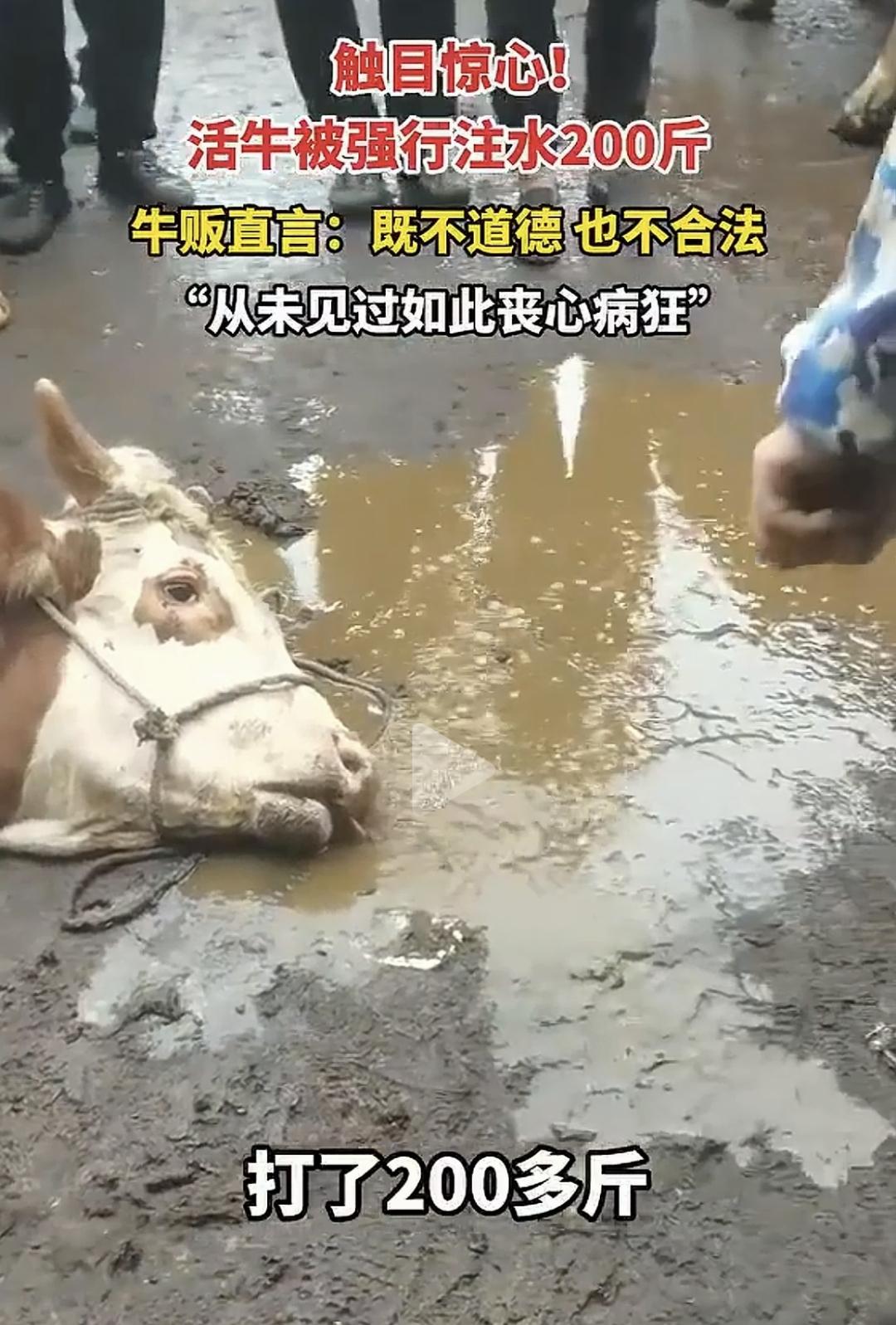 广西钦州,9月30号,一头牛,哞地一声,成了“移动水桶”。10小时,200斤!不是它爱喝水,是有人拿它当桶!高压水枪+2米硬管,从嘴插到胃,一路绿灯,直达“泳池”。 牛哥甩头甩到口吐白沫,贩子咧嘴咧到见后槽牙:多一斤水,多一张票子,完美! 最骚的操作是——怕漏,还给打了个“工业胶补丁”。好家伙,牛肉自带502,这口感,嚼完直接粘嘴唇,贩子“贴心”到让人想报警。 庞先生当场裂开:我买的是牛,不是水桶!网友更扎心:今天往牛胃里灌,明天就往你心里灌,灌着灌着,信任就稀碎,跟那200斤水一样。 别再说“杀生不虐生”是圣母,这是底线!牛耕了一辈子的地,最后耕的是人类的良心,结果还耕不动,因为良心也被注水了! 所以建议法律别端着了,把“注水”写进刑法,注一斤,拘一年,注到200斤,直接牢底坐穿! 我们消费者也别只会“啊好惨”,,买肉前多看一眼,让那些给牛煮水的直接失业! 这个事件不仅是个别商贩的道德沦丧,更是食品安全全链条监管的警示钟。唯有法律严惩与公众监督并举,才能终结“注水牛肉”的黑色产业链。 [原创文章,图源网络]