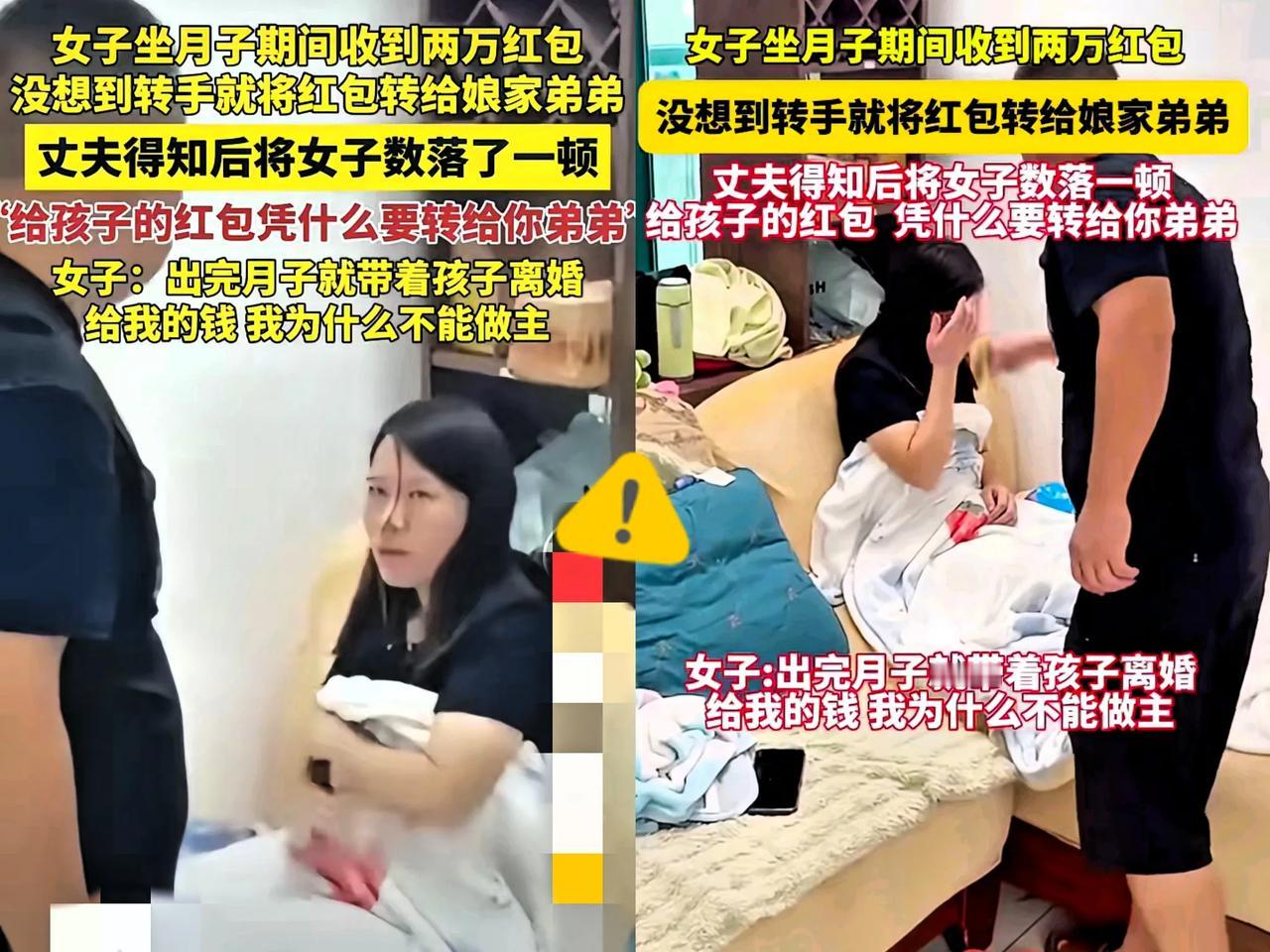 “女子坐月子期间收到2万红包,没想到转手就将红包转给了娘家弟弟。” 丈夫得知后