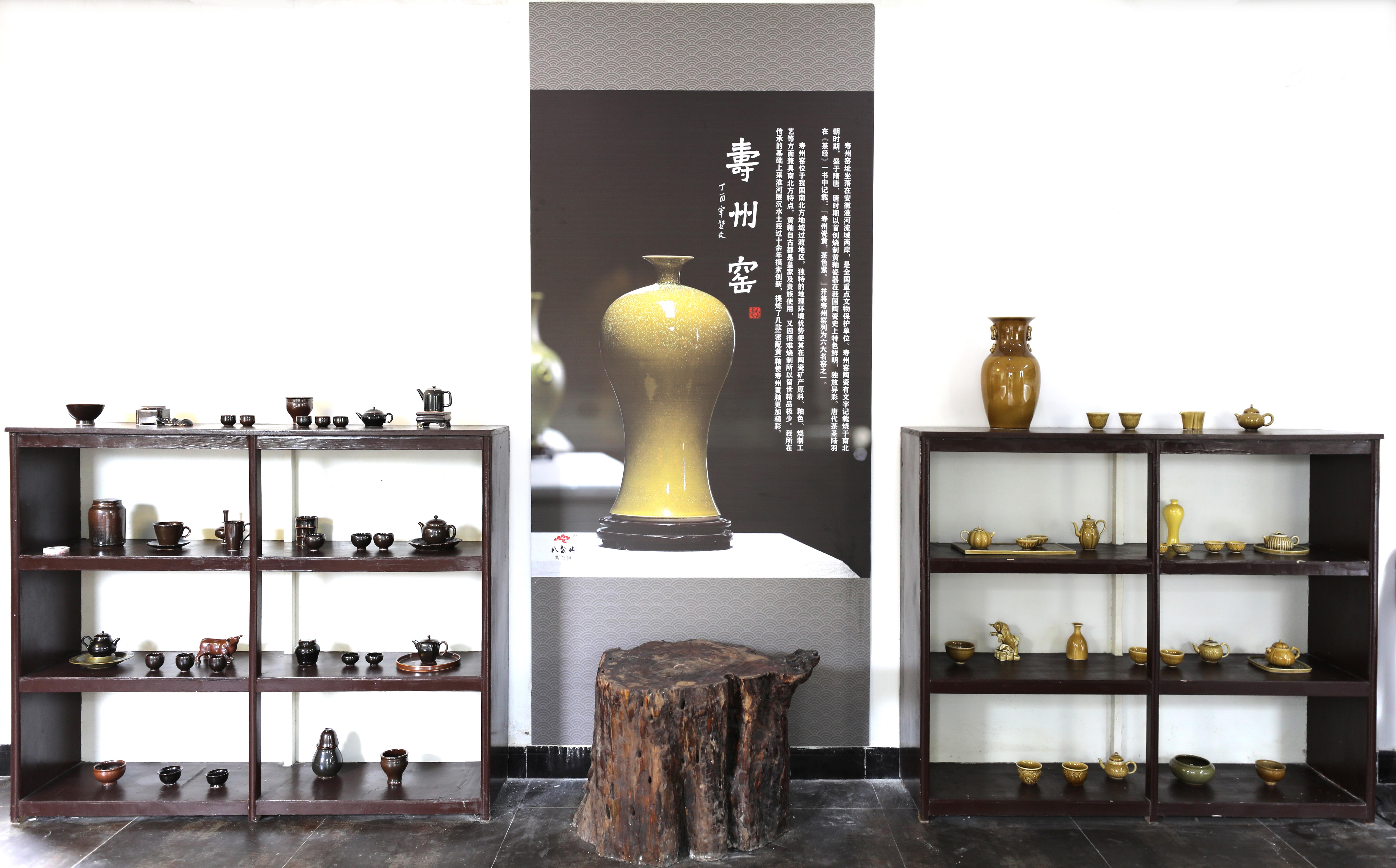 古色古香的房屋里陈列着寿州窑作品。