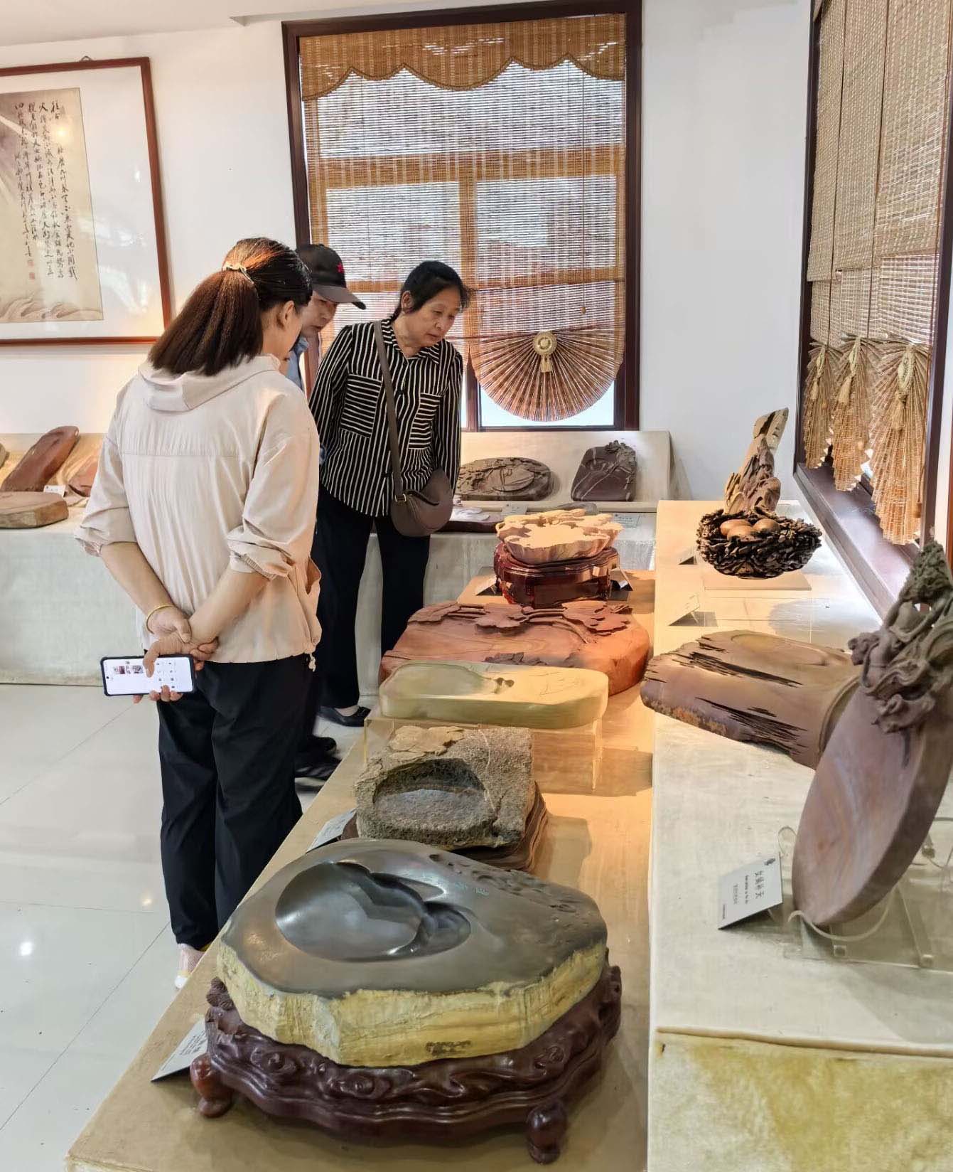 游客在参观紫金石工艺品。