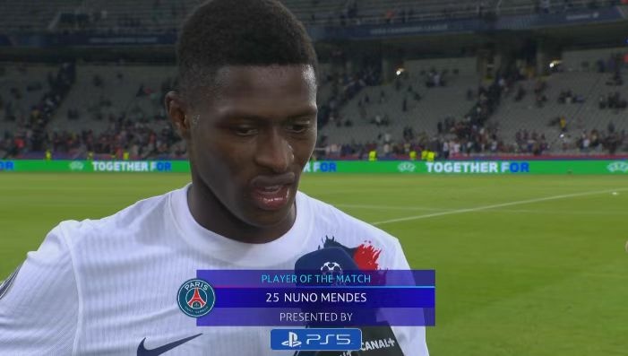 长途奔袭助攻!努诺-门德斯当选巴黎vs巴萨全场最佳球员