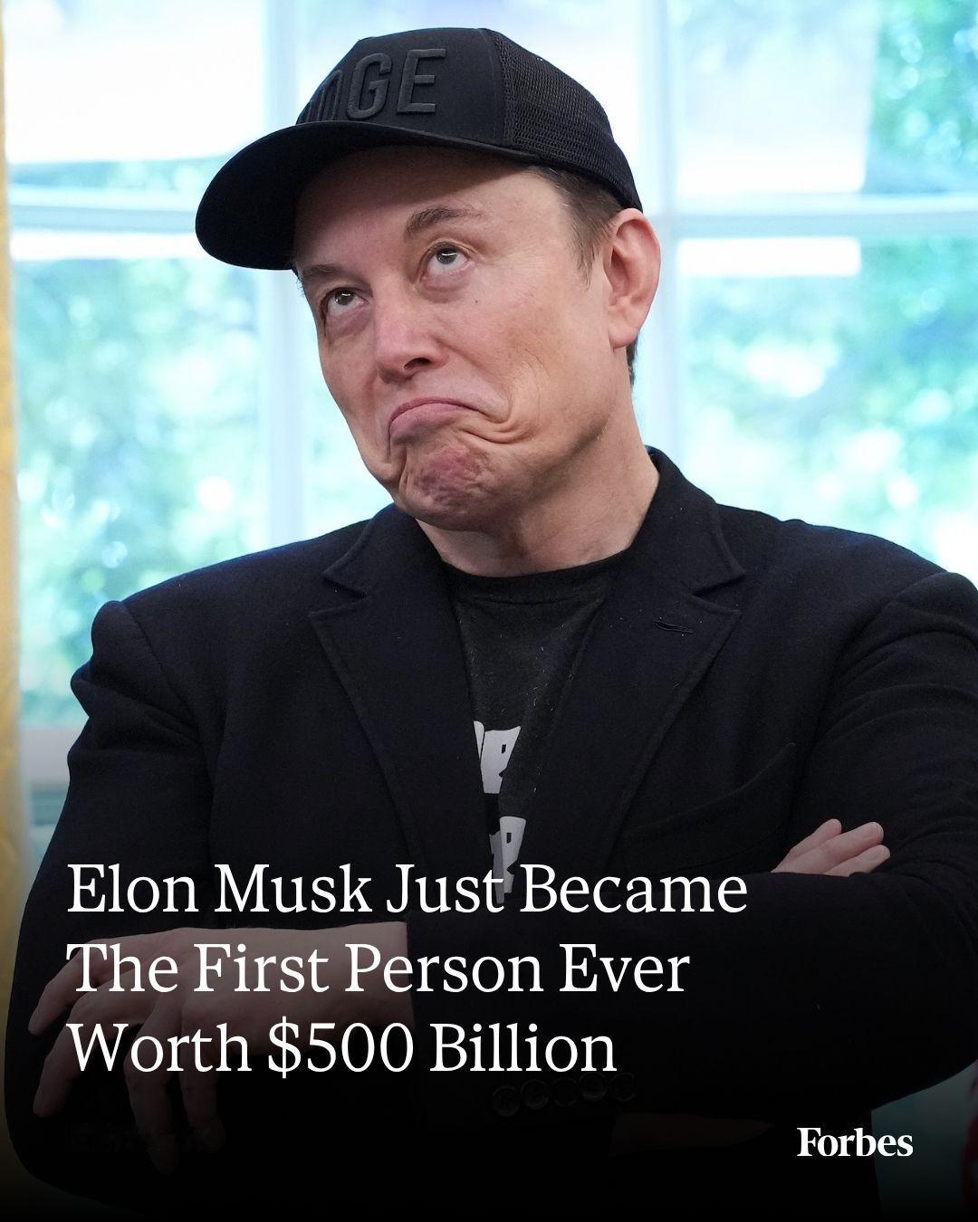 据《福布斯》,全球首富马斯克周三再次实现重要里程碑,成为首位身价突破5000亿美