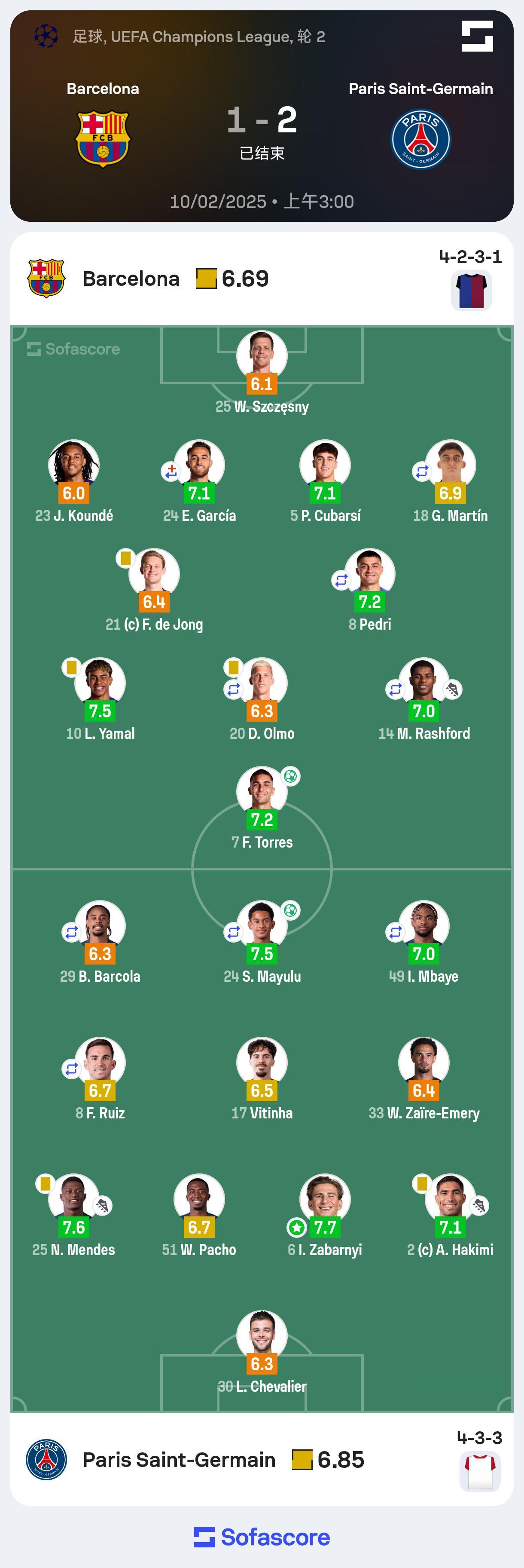全场比赛评分[无聊][无聊][无聊][无聊]巴萨1比2巴黎热点现场巴萨vs巴黎