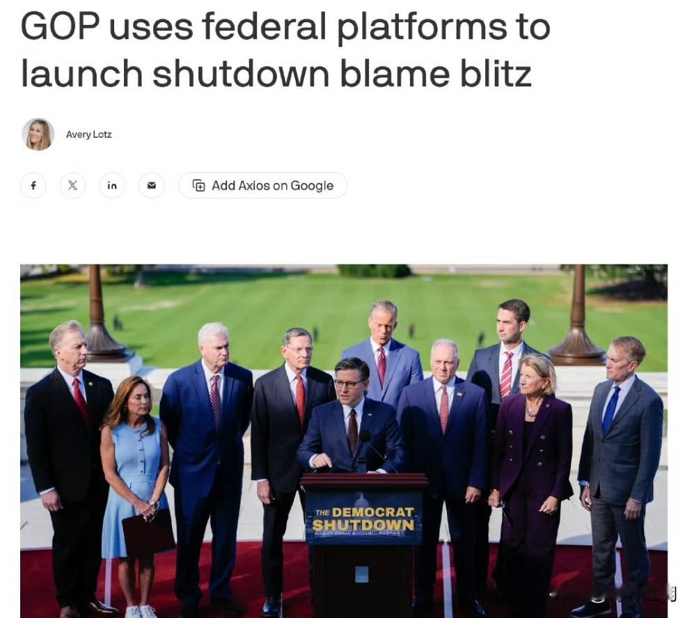 共和党利用联邦政府平台发起对民主党的指责攻势 由于共和党掌握着白宫和国会的控制权,他们正在利用政府网站(通常不用于党派辩论的渠道)来表达他们的不满。 周二,住房和城市发展部网页的访问者会收到一条弹出消息,上面写着:“激进左翼分子将关闭政府,并给美国人民带来巨大的痛苦,除非他们实现 1.5 万亿美元的愿望清单。”周三,政府关门后,公告内容如下:“国会激进左翼关闭了政府。” 司法部网站顶部的横幅上写着:“民主党已经关闭了政府。” 消费者权益保护组织“公共公民”声称,住房和城市发展部的信息“公然违反”了《哈奇法案》,该法案旨在确保联邦计划以无党派的方式实施。 民主党的杰弗里斯在周三的帖子中表示:“民主党正在努力保护你们的医疗保健。唐纳德·特朗普和共和党人关闭了政府,因为他们想剥夺你们的医疗保健。”