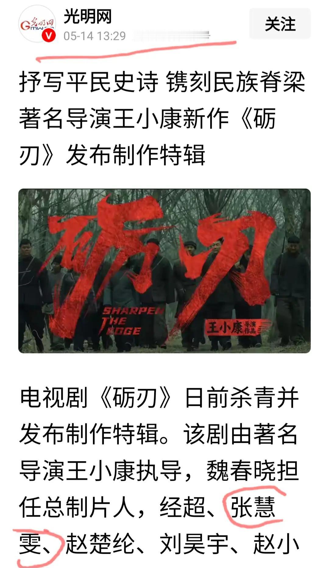 2025年横店开机的第一个剧组就是张慧雯出演女一的《砺刃》,又是一个从未涉及过的抗战题材“运河游击队”。 慧雯挑剧本的题材总超前。她的剧不多,但基本都会让央视一或央八、卫视锁定,所以上线很慢。希望她的剧上线播的速度能快点。 明明可以靠颜值的姑娘,演的剧却全不晒颜值,不卖甜宠,完全靠实力!