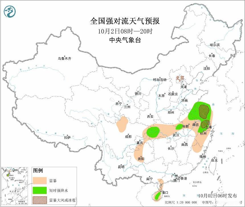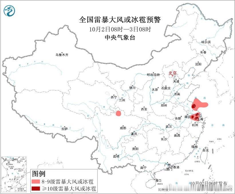 预计10月2日08时至3日08时,江南东北部、江淮东部等地的部分地区将有8级以上雷暴大风或冰雹天气,其中,江苏东部和南部等地的部分地区将有10级以上雷暴大风,最大风力可达11级以上;
