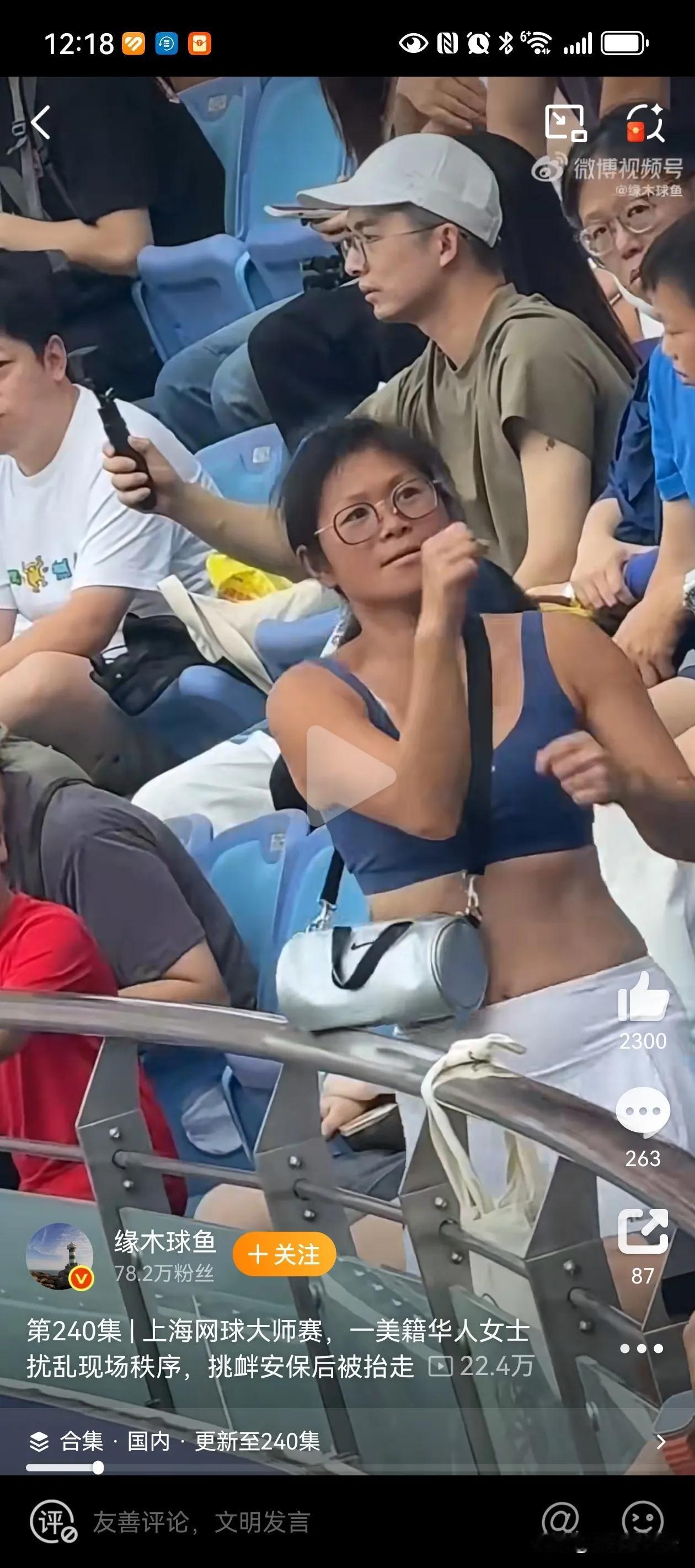 在上海网球大师赛上,一位持外籍护照的华裔女子彻底抢了比赛的风头——不是靠球技,而是靠即兴表演。 她上蹿下跳、花样撒泼,活像球场上的“行为艺术家”,结果保安看不下去了,直接给她来了个“VIP强制离场服务”。 观众瞬间沸腾,掌声雷动,不知道的还以为冠军诞生了! 现在这出闹剧全网疯传,网友调侃:赛场上是网球对决,看台上是“人类迷惑行为大赏”,这波操作,连裁判都该掏红牌!上海网球公开赛 上海网球赛 上海网球活动