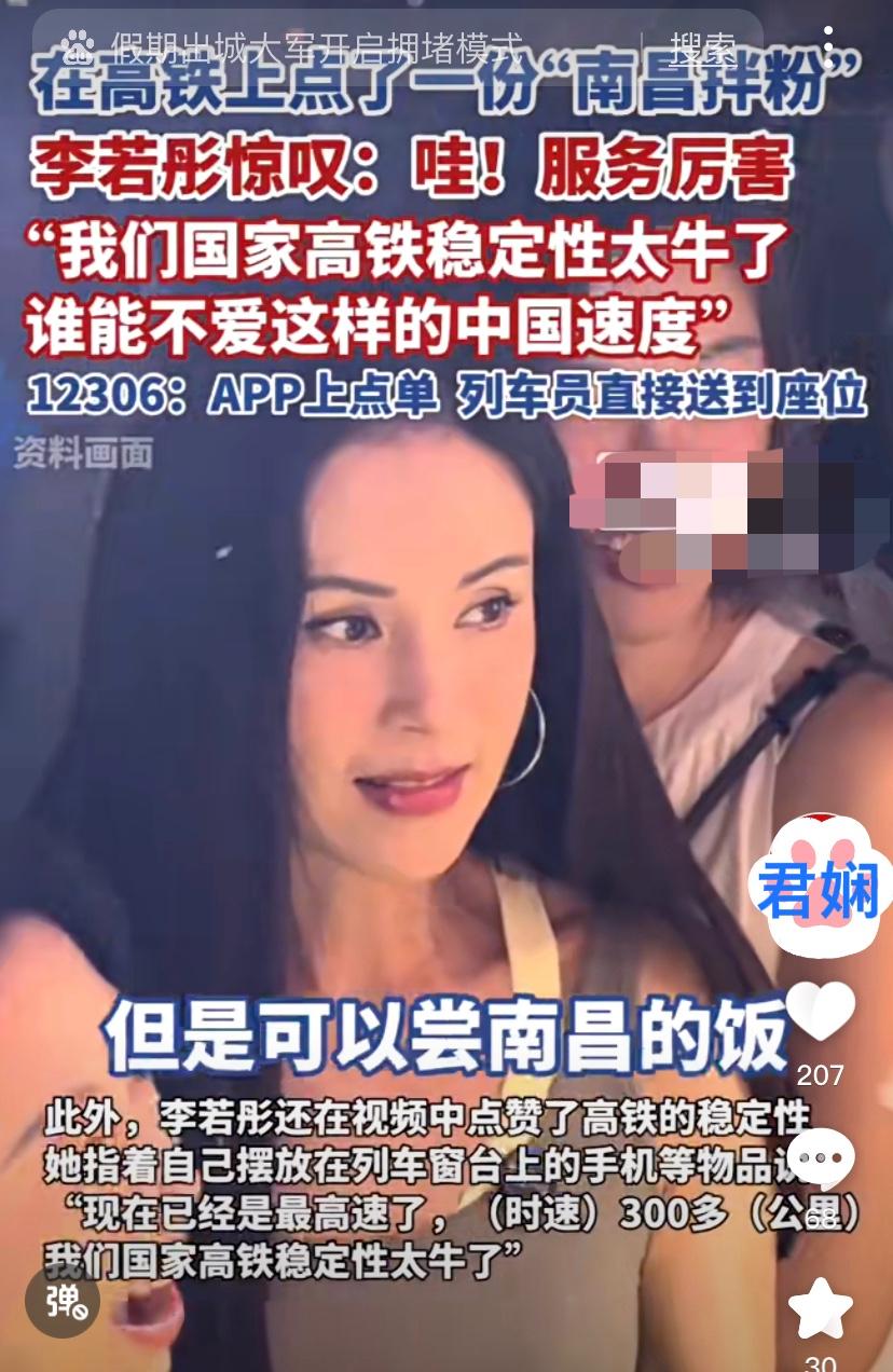 标题:李若彤高铁点南昌拌粉,她夸的不仅是“中国速度”,更是无微不至的服务! “