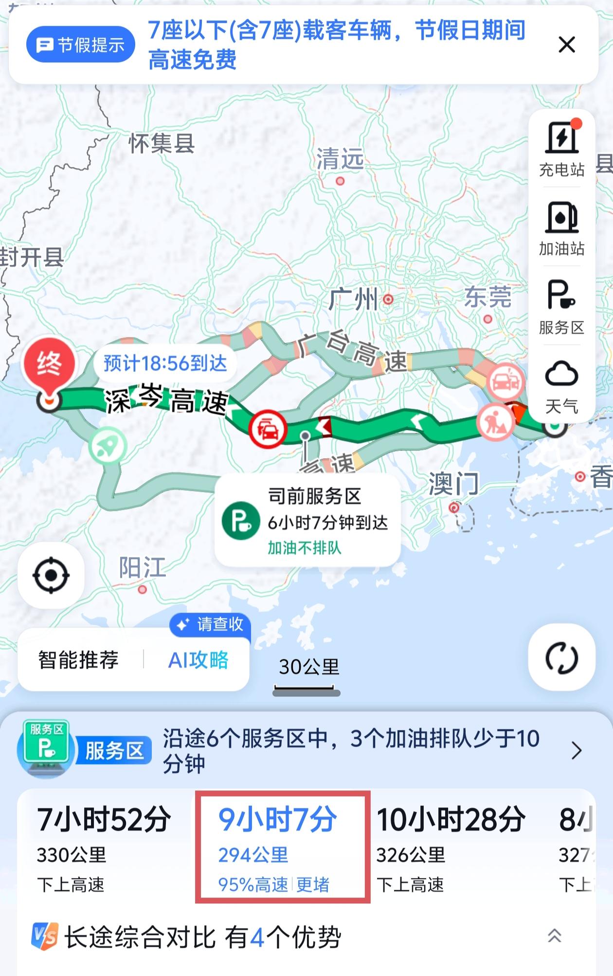 怎么办,今天10月2号了,深圳回罗定走深岑高速还是需要9个多小时,这还是导航显示