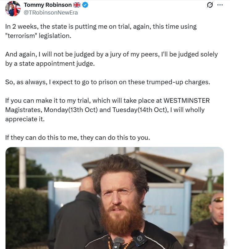 如果你能来参加我的审判——将在西敏市地方法院于周一(10月13日)和周二(10月14日)进行——我将非常感激。