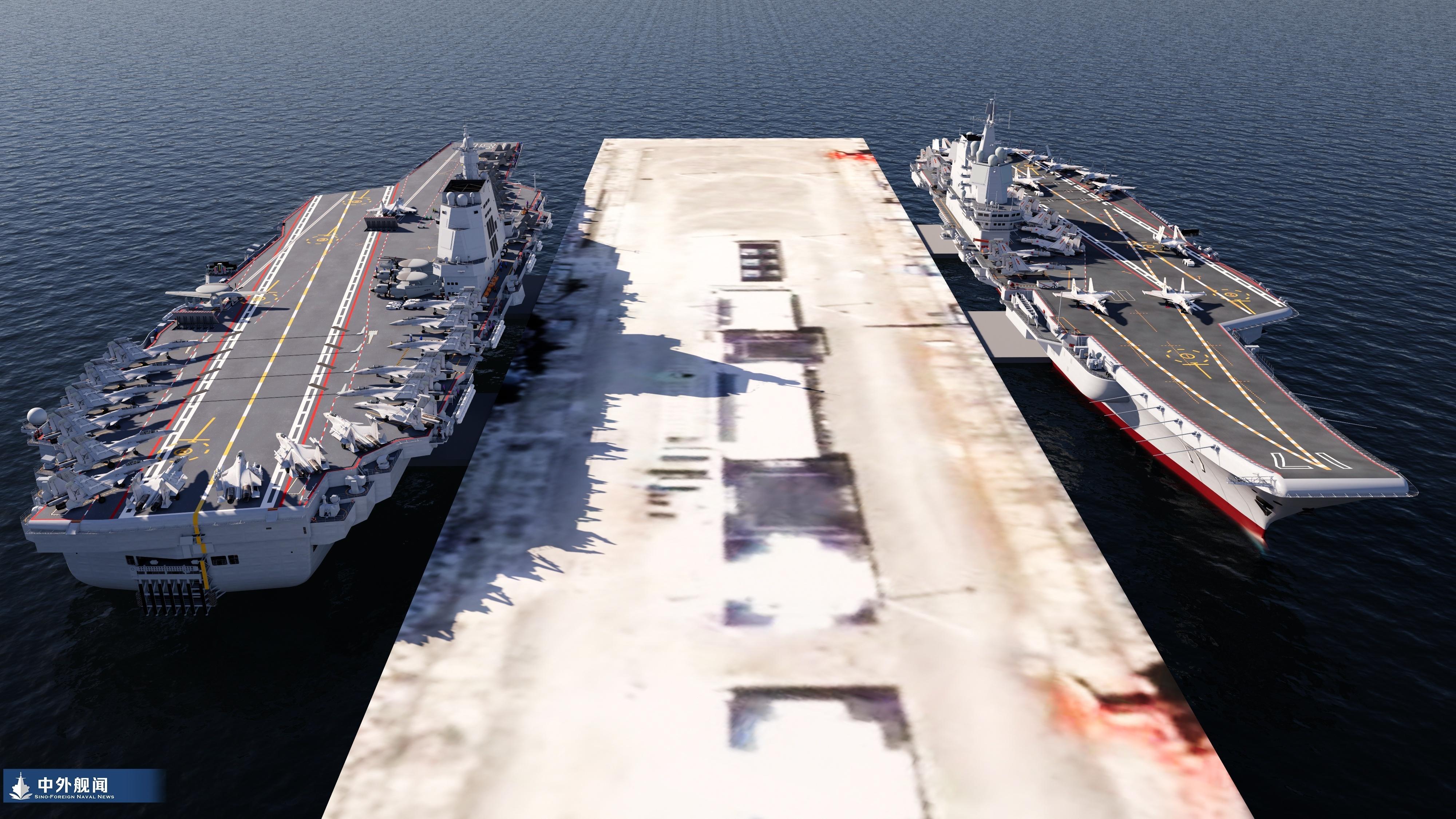 另外,通过同框对比也可以看出,“福建舰”比“山东舰”大了一圈,真的不愧是“8万余吨”和“6万余吨”的对比……(图3源: