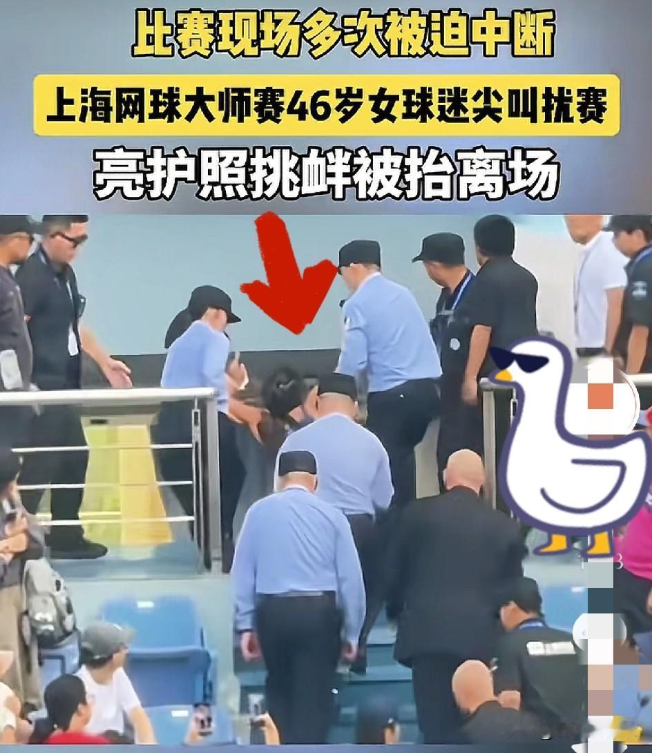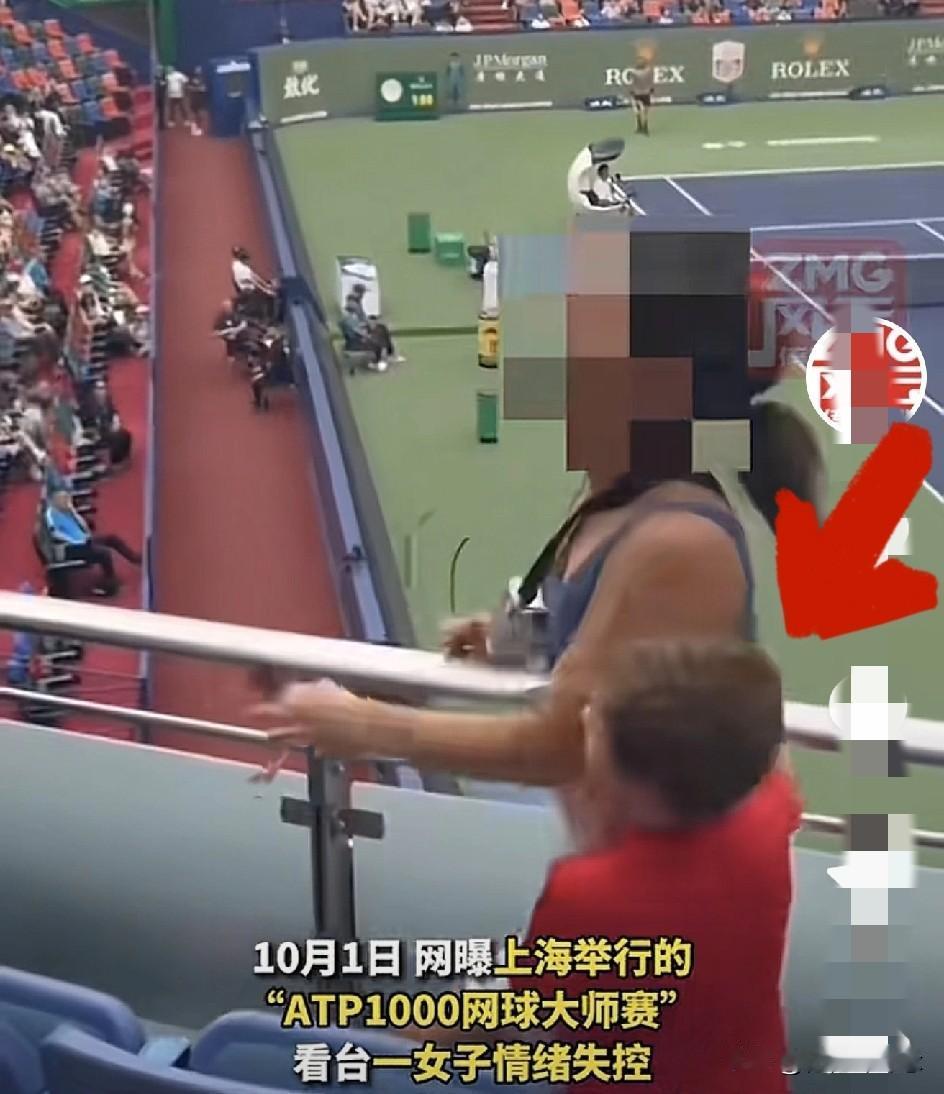 谁能想到 被驱离的观众是某珠宝店老板,嫁于瑞士籍老板,育有混血儿女。 46岁,某公司外籍经理妻子。 10月1日16时许,某某某酒后在旗忠网球中心大赛期间喧哗挑衅安保,妨碍比赛进行。 其行为严重扰乱场内比赛秩序,导致意大利球员贝雷蒂尼与法国球员马纳里诺的比赛暂停进行。 警方出警赶到现场进行劝阻,其酒后不听劝阻,继续挑衅安保人员与现场工作人员。 其行为严重影响赛事进行,场面极其混乱。 警方依法将其带离现场并予以行政处罚。 关键是还带着小朋友,作为一个妈妈她配吗?
