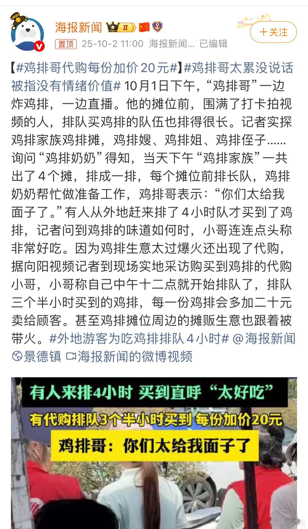 鸡排哥代购每份加价20元鸡排哥:累,都累,累点好啊
