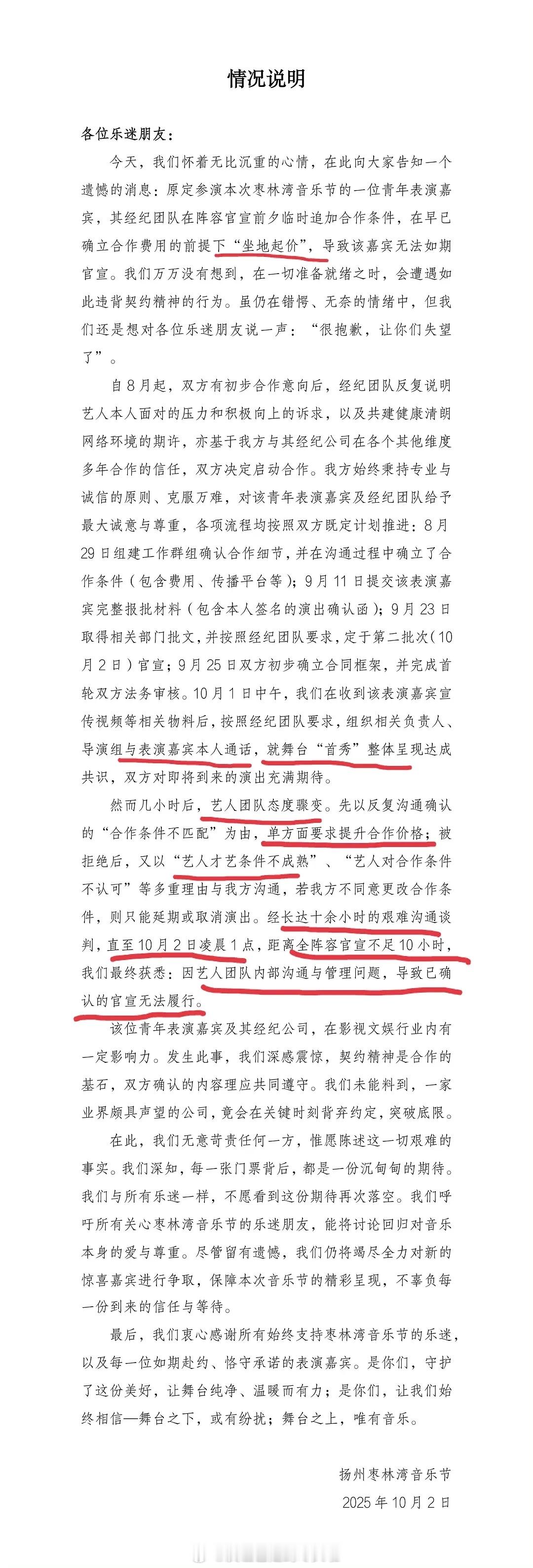 枣林湾音乐节主办方开麦,某青年表演嘉宾经济团队昨晚凌晨一点坐地起价,本来打算今天10点官宣的。