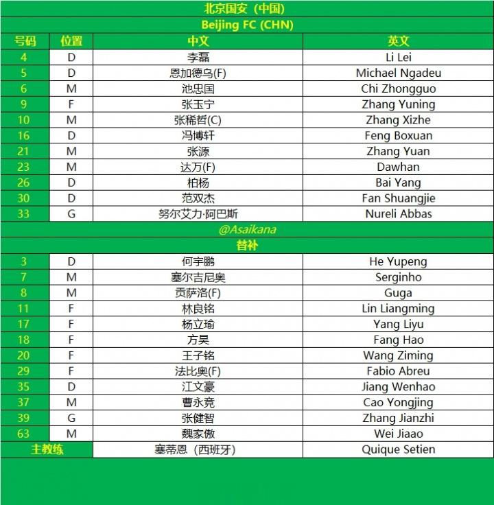 直播吧10月02日讯25/26赛季亚冠二级联赛小组赛第2轮,北京国安客战澳超球队麦克阿瑟FC,赛前首发阵容公布。