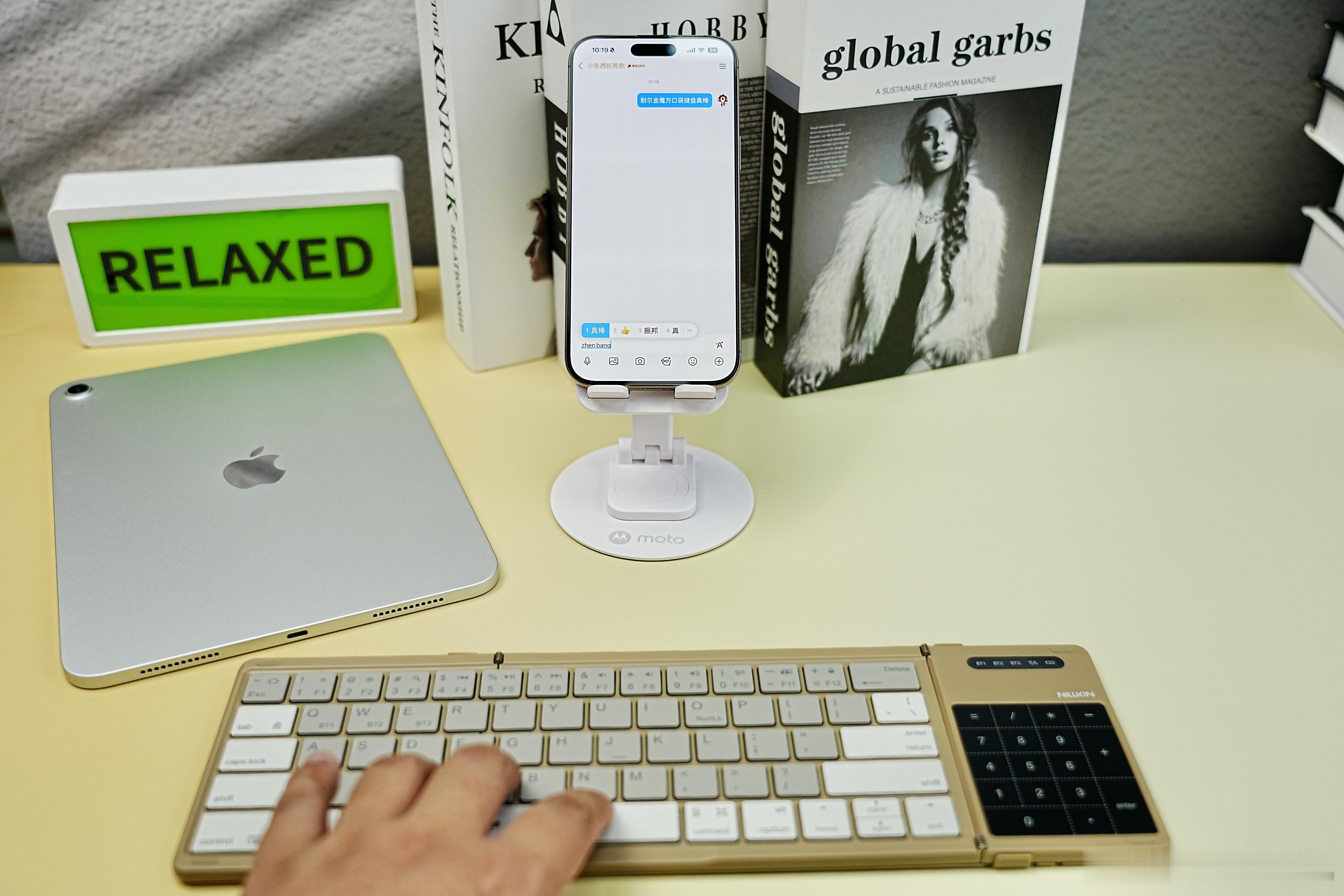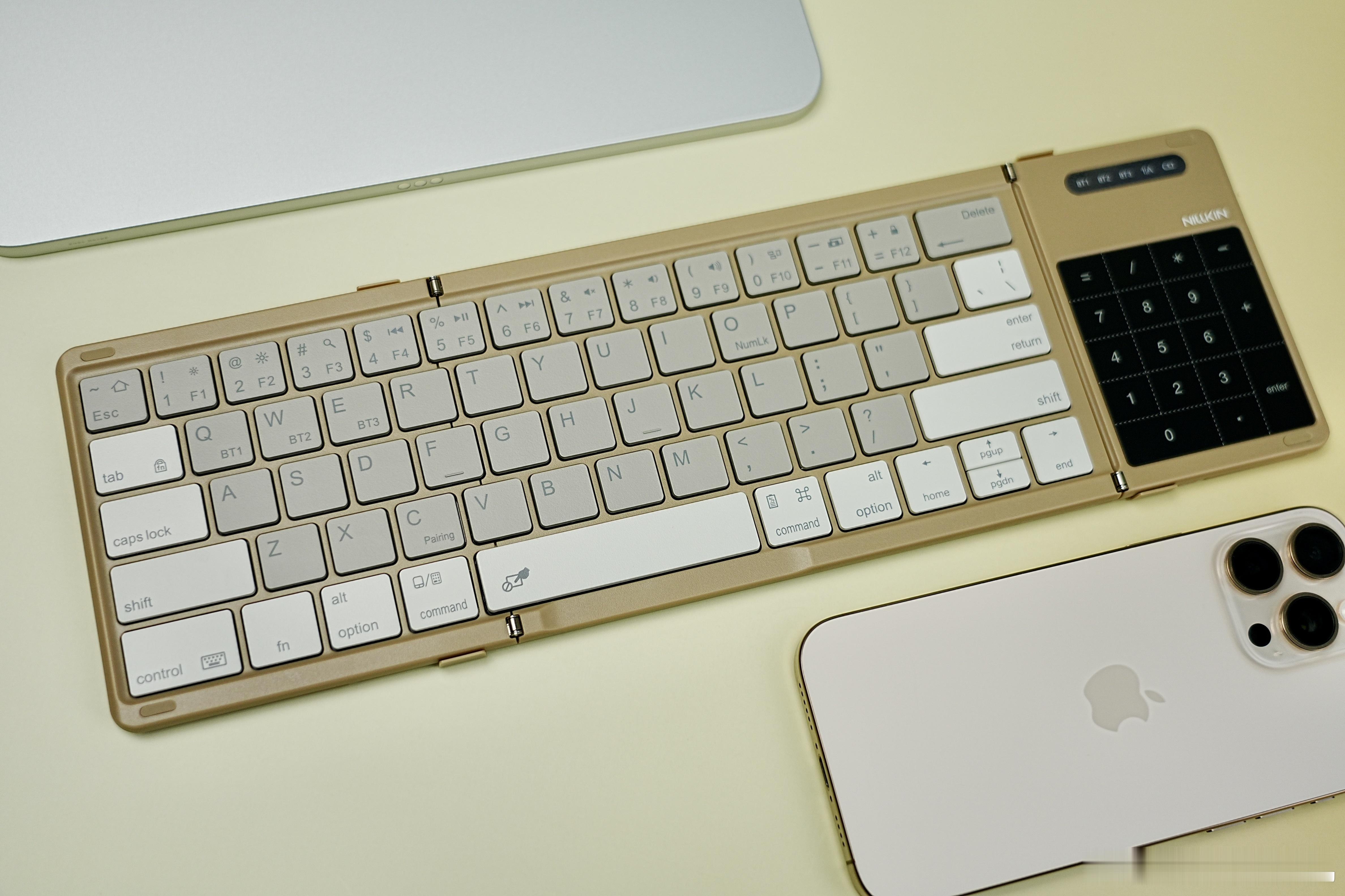 作为一名职场人士,业余还要随时搞创作,拥有一款便携式可折叠键盘那可太棒了,不论是手机、平板还是笔记本等设备,统统拿捏,小金家的这个三折叠无线蓝牙魔方口袋键盘就能满足我出门随时需要办公创作的需求。键盘小巧便携仅有238g,薄至16mm,采用有机硅皮革工艺,高级感十足,还拥有防污、耐刮擦、防水、阻燃等特性,使用寿命可超10年,桌面及移动办公,一个搞定。