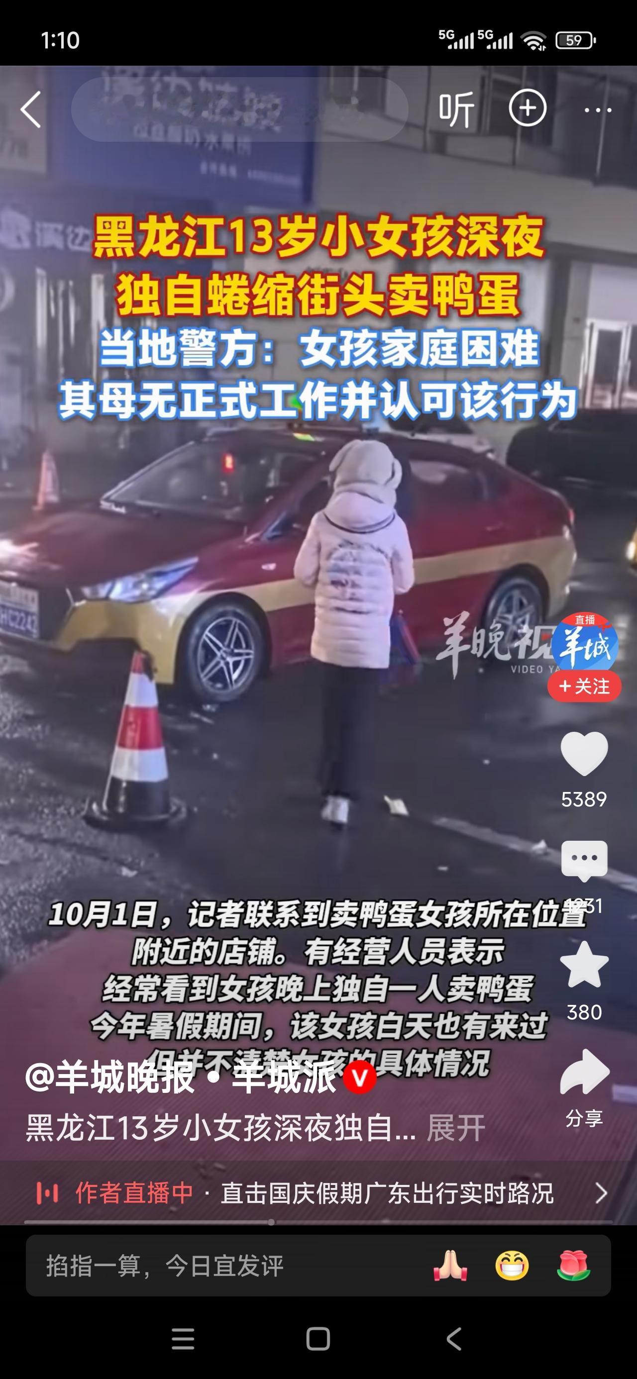 别人家13岁的女孩或许在家里连碗筷都未曾洗过,她却以羸弱的肩膀,扛起了生活的重担。 在鹤岗市的寒夜街头,13岁的小女孩独自蜷缩着叫卖鸭蛋。不仅如此,寒暑假时她还会卖些鲜花、小乌龟之类的,挣点小钱,只为减轻患病母亲的负担。 原来,小女孩成长于单亲家庭。真是应了那句“穷人的孩子早当家”。