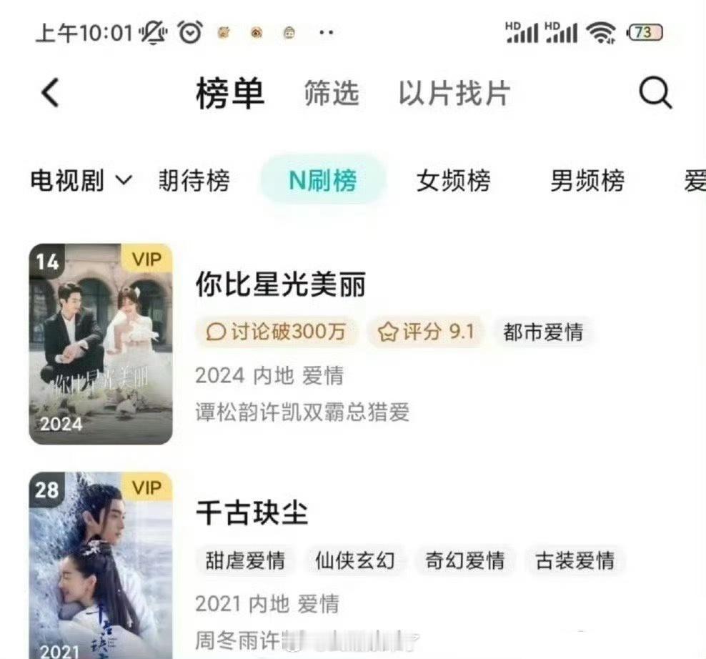 许凯《你比星光美丽》《千古玦尘》进入鹅N刷榜了,完结这么久了,长尾太优秀了!