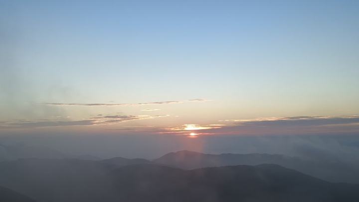10月2日凌晨4点40分,闹铃响起,出了帐篷,抬头见惊喜,满空繁星,有的散落点缀,有的抱团组成图案,第一次感觉人与天如此之近,有种抬手捉星辰的感觉,观星良久一行人简单洗漱后5点开始登山,一路都是游客,半个小时后一家人兵分两路,体力强的继续去往山顶,体力弱的则停在了矮一点的观日平台。