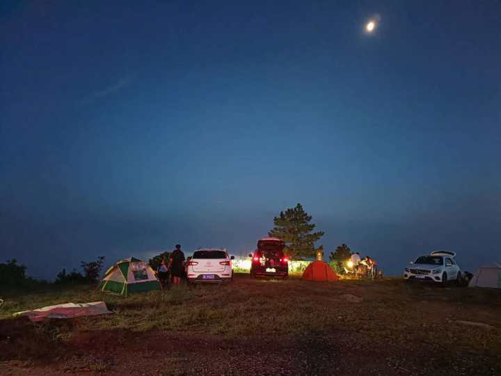 老何说,前段时间看血月,露营基地停满了车,有三十几辆,一辆靠着一辆,凌晨客人看完血月就山下了,所以不搭帐篷不过夜。