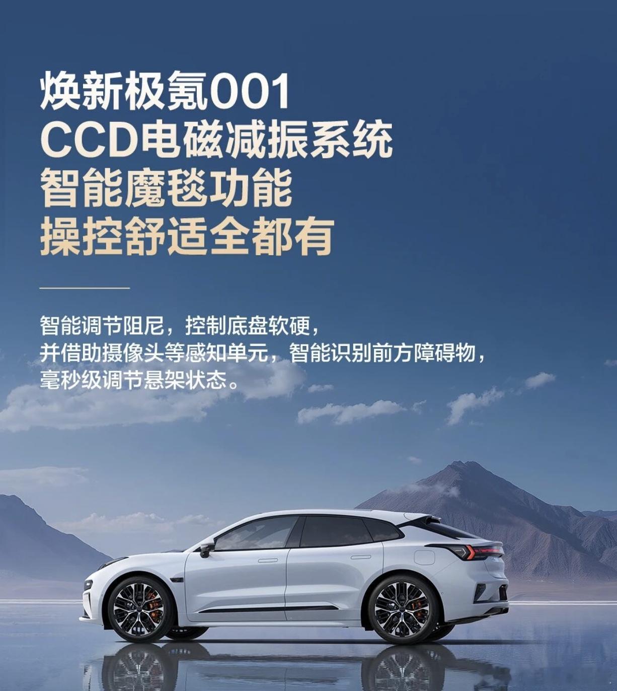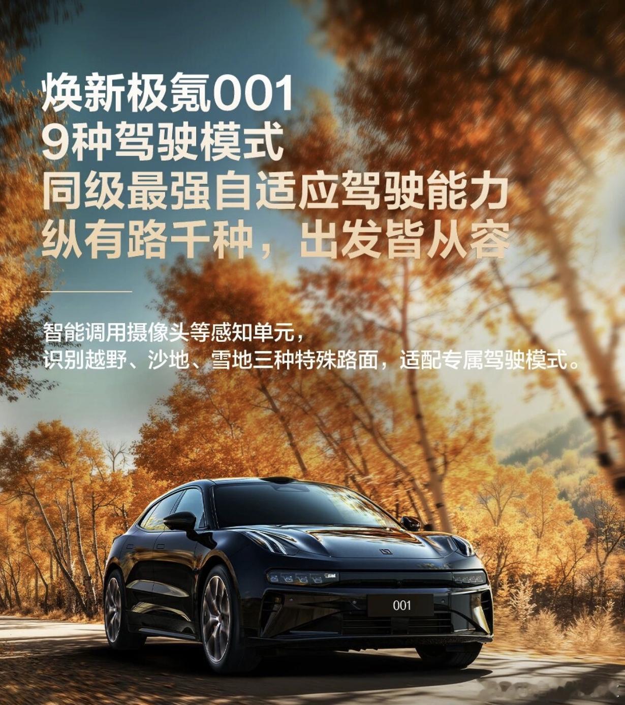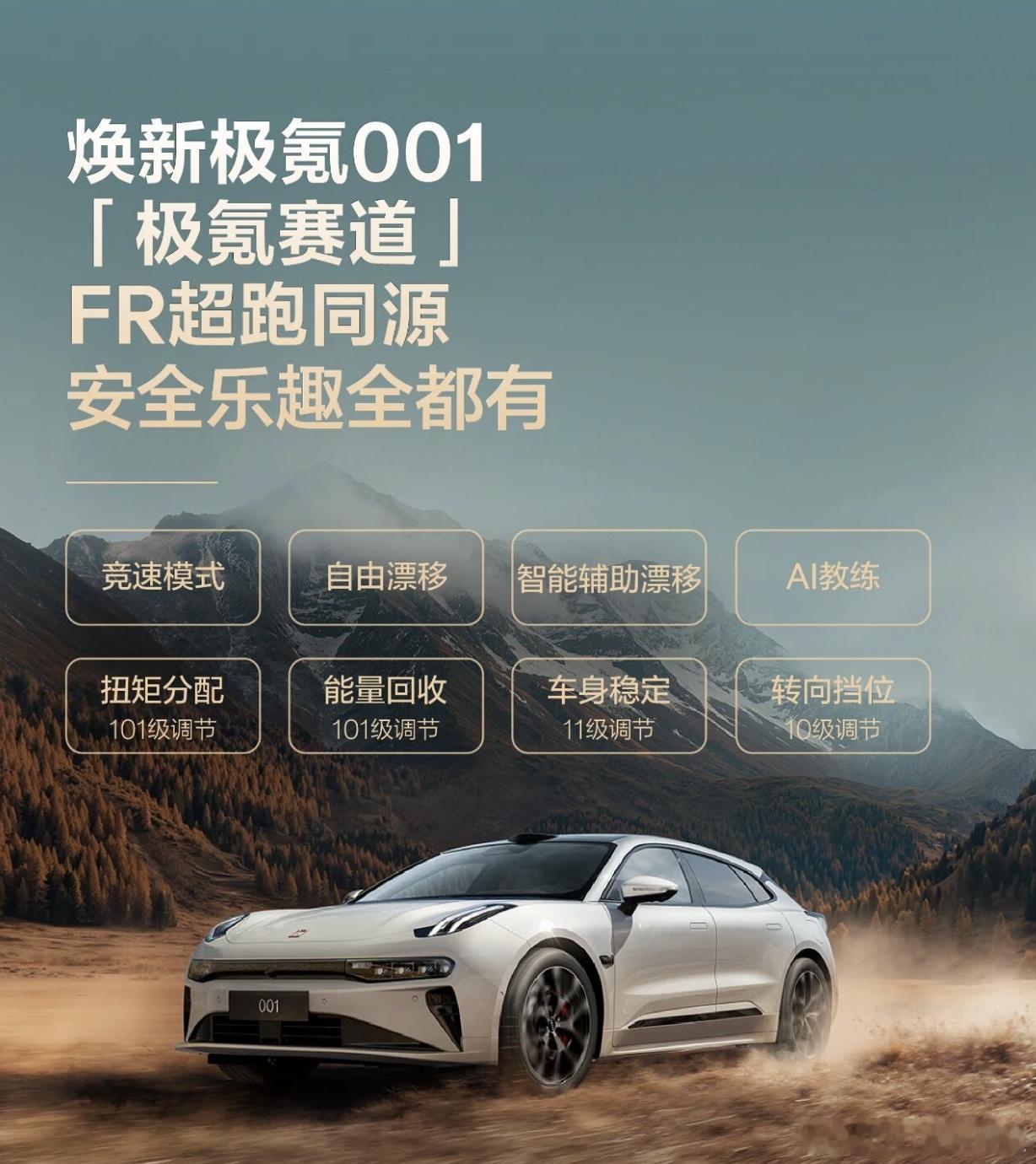 焕新版版极氪 001 又公布了新的升级配置,闭式双腔空气悬架、极氪赛道模式。
