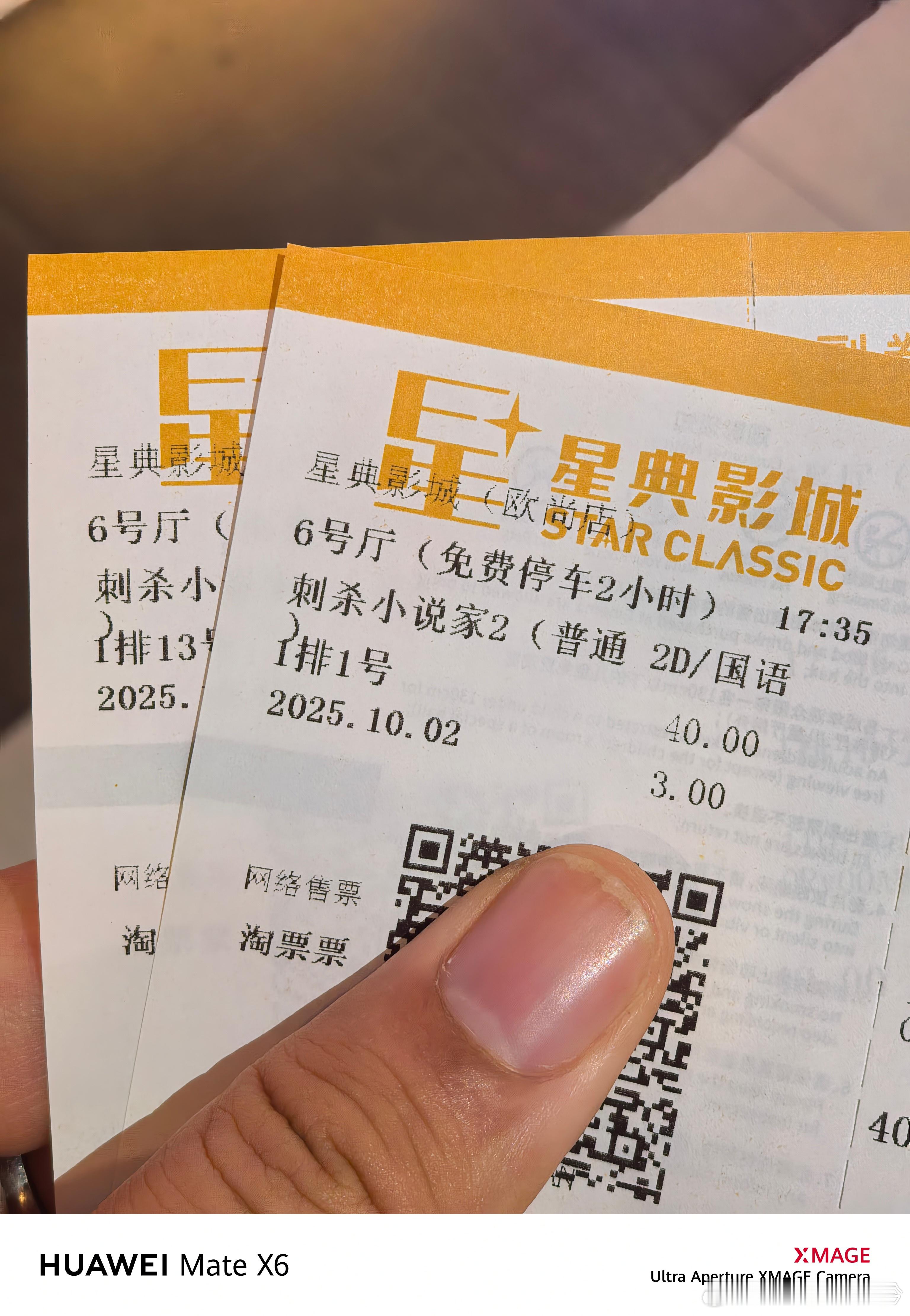 国庆假期第二天去看刺杀小说家2了,希望别烂[摊手][摊手]俩小时后见!