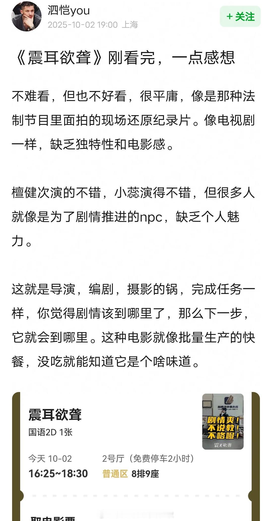 路人口碑出来了,不好看也不难看很平庸,拍的像电视剧,像法制节目纪录片,类猎罪图鉴,缺乏独特性和电影质感。