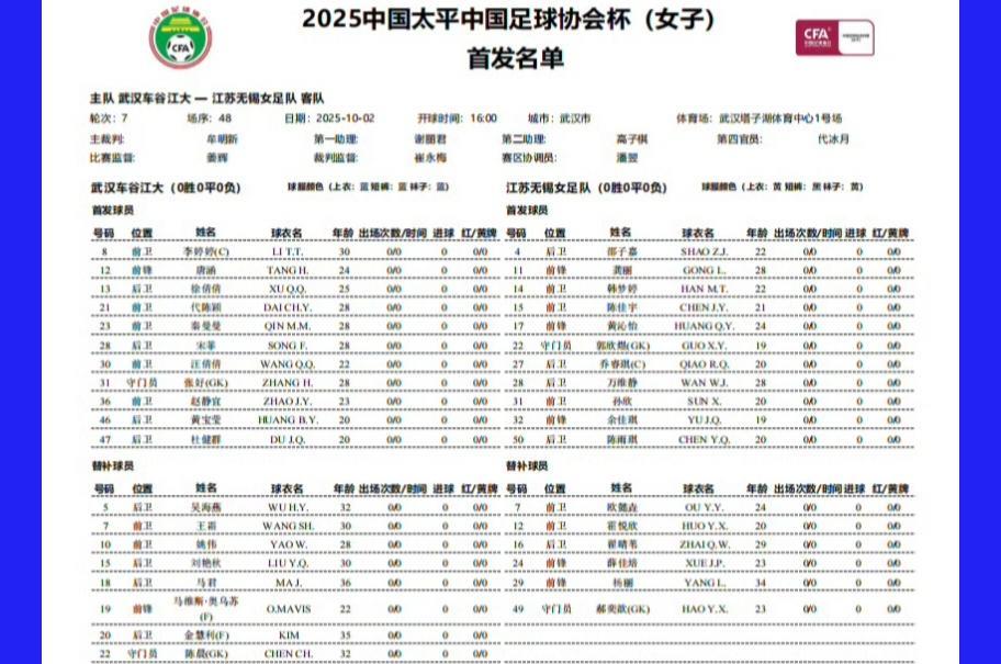 江苏女足替补阵容杀入足协杯四强,陈婉婷以身犯险,精准预判了常卫魏的排兵布阵,这是胜利的关键。 毫无疑问,28号刚刚结束被中国足协的集训肢解得七零八落的联赛,三天后就是足协杯的1/4决赛,如何尽最大限度的保护主力、应对足协杯和全运会,这至关重要。 从傍晚落幕的足协杯四强争夺战看,上海女足、长春女足、广东女足都由主力球员全面出击,当然,她们都纷纷赢下了实力较弱的对手,如愿晋级了四强。 而昨天抵达武汉的江苏女足,只带了17名球员,俱乐部核心精英邵子钦、金坤、倪梦婕、徐欢、韩璇、杨茜、严晓玉、龙欣彤、窦加星全部都留在了江阴的训练基地。 看到出场名单的那一刻,很多人都说陈婉婷是放弃了,但我们似乎低估了少帅陈婉婷的“胆大妄为”,她笃定了为应对10月8号的世俱赛、常卫魏一定不敢大举压上主力硬刚江苏女足。 为保存实力,蓄力世俱杯,武汉女足果然将王霜、吴海燕、姚伟、邓梦晔、陈晨、刘艳秋等主力、以及外援金慧利、奥乌苏放在替补席上待命,而首发的是李婷婷、唐涵、徐倩倩、代陈颖、秦曼曼、宋菲、汪倩倩、赵静宜、黄宝莹、杜建群、门将张好等半主力阵容。 从首发阵容看,江苏女足与武汉女足都是今年以来最新、最年轻的,前者的目的是为了冲击足协杯、全运会的冠军,后者则是为了意义非凡的10月8号。 加油,常卫魏、陈婉婷! 加油,武汉女足、江苏女足! 为各自接下来的梦想成真而战吧!