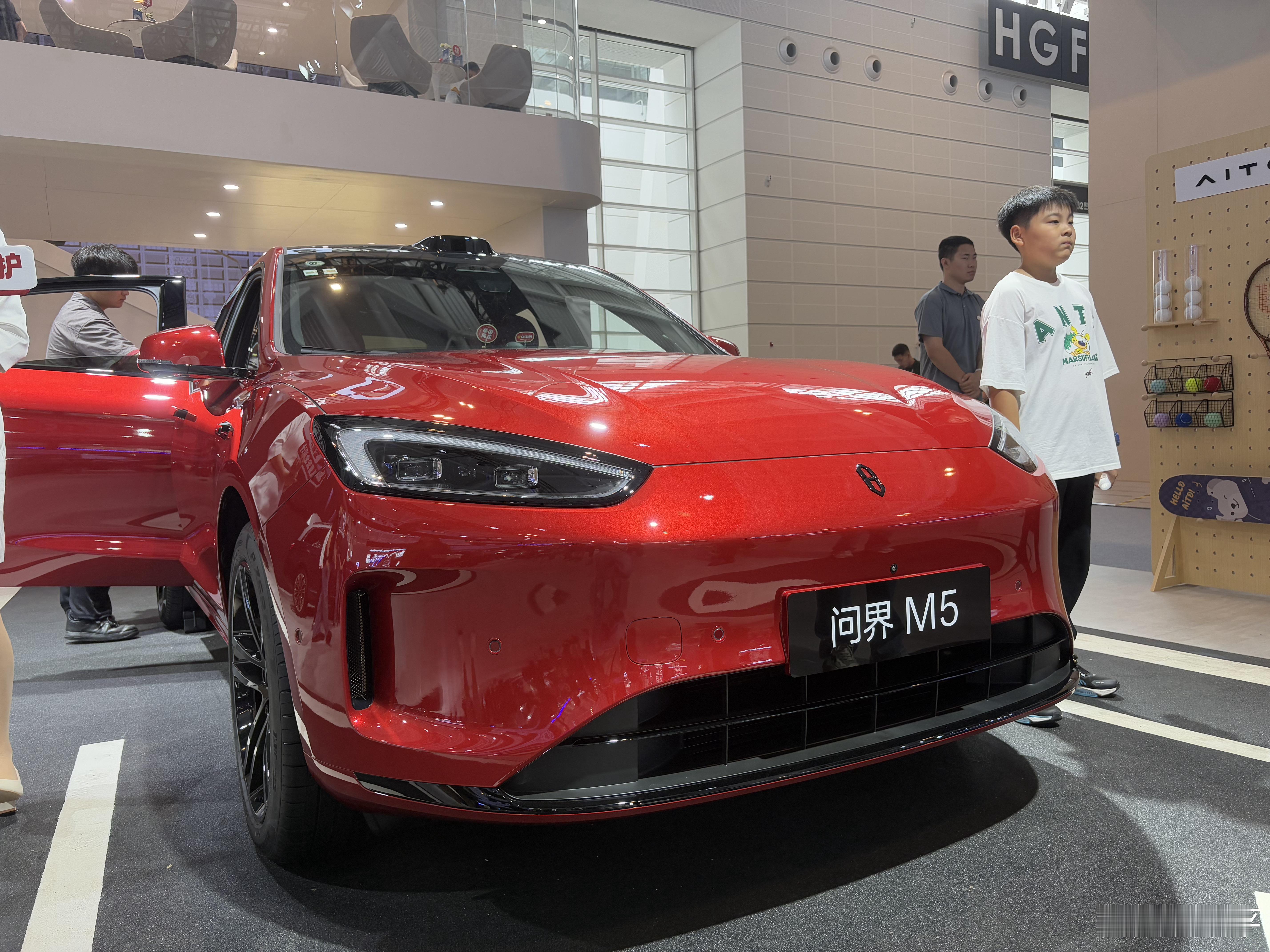 问界M5,主要觉得红色车漆好看,内饰质感不错,我引导她看M789,但还是对5感兴趣;