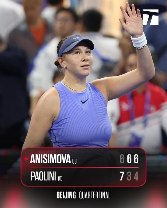 直播吧10月2日讯在以2-1的比分淘汰保利尼晋级中网女单4强后,阿尼西莫娃也锁定了年终总决赛的参赛资格。