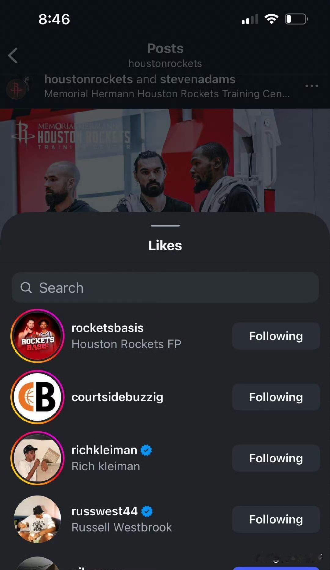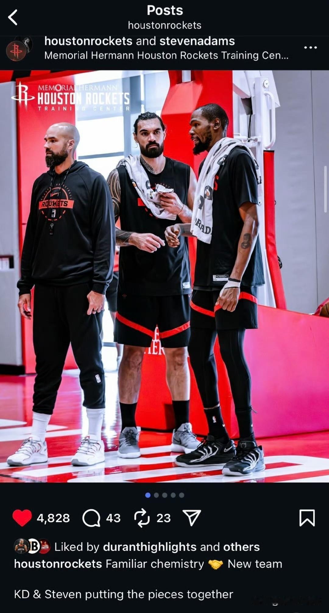 威少为火箭队官方帖子点赞!!!威少会和大哥杜兰特重聚吗? 训练营开始了,新赛季