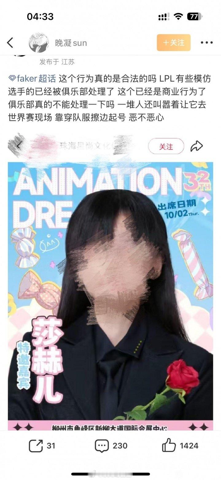 此前女网红因酷似Faker而走红,后续也是参与与英雄联盟的相关活动让其名声大噪,近日不少粉丝在Faker超话中强烈要求官方清算“莎赫儿”。