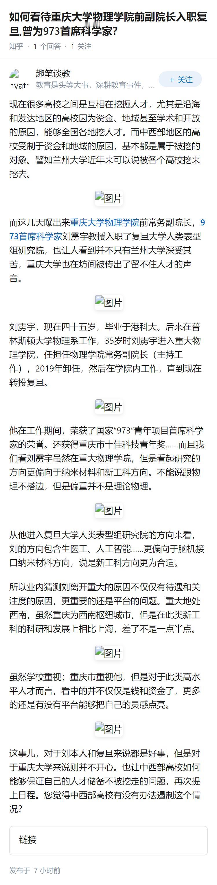 如何看待重庆大学物理学院前副院长入职复旦,曾为973首席科学家?