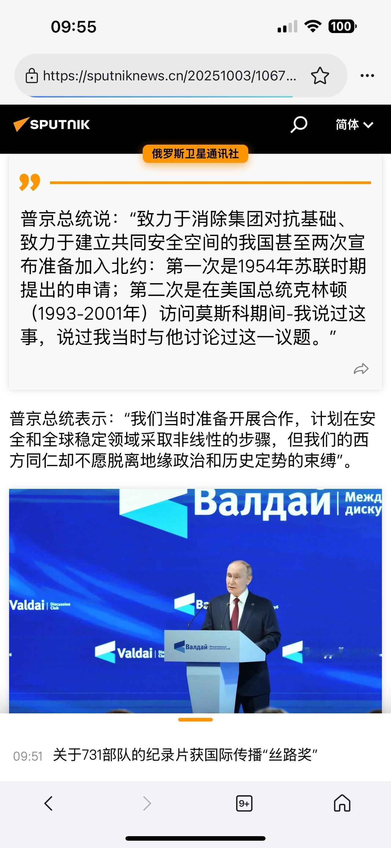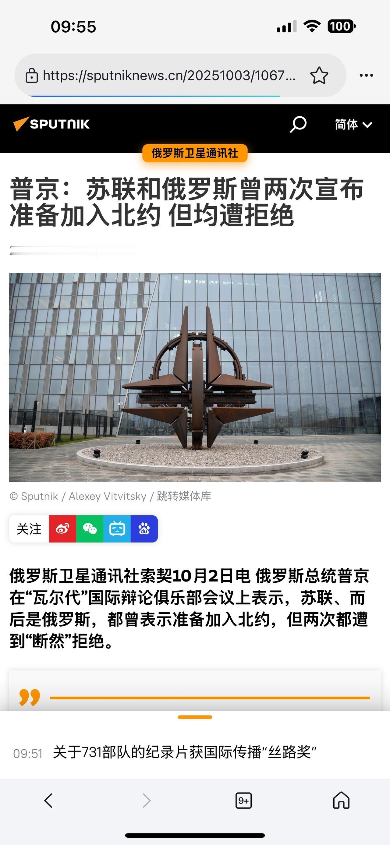 普京证实:苏联、俄罗斯两次申请加入北约,然后被拒绝! (欢迎关注点赞支持) 2025-10-2俄罗斯卫星通讯社索契报道:俄罗斯总统普京在“瓦尔代”国际辩论俱乐部会议上表示,苏联、而后是俄罗斯,都曾表示准备加入北约,但两次都遭到“断然”拒绝。 观察分析:国内很多网民否认,俄罗斯曾经申请加入北约。而事实是苏联、俄罗斯都申请过,但是苏联要求在北约具有“领导”地位,不愿意接受和其它成员国(小国)一样的责任和地位。 而且,前苏联、俄罗斯希望北约修改某些条款,从而满足他的实际情况。比如:北约作为一个防御性组织,成员国不得主动进攻另一个国家…… 北约拒绝前苏联的原因,是它自身不符合北约的相关要求,并且也不愿意改变。从而被北约成员国否决!