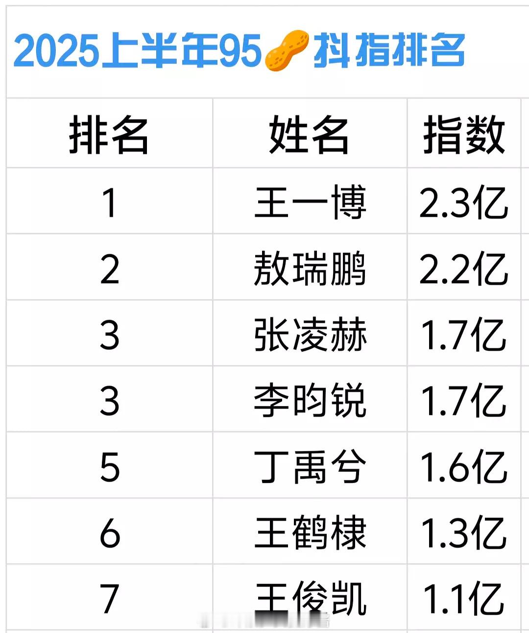 王一博这么久没播剧了,抖指还这么高,95生TOP名不虚传。 ​​​