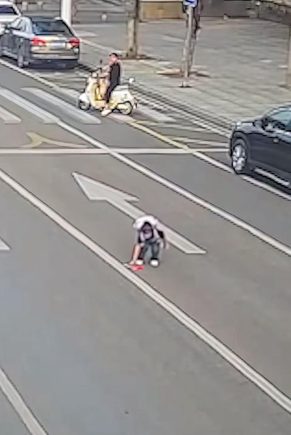 这一幕,人民日报也忍不住转发了! 五星红旗掉在马路中间,放学路过的小女孩不顾车流