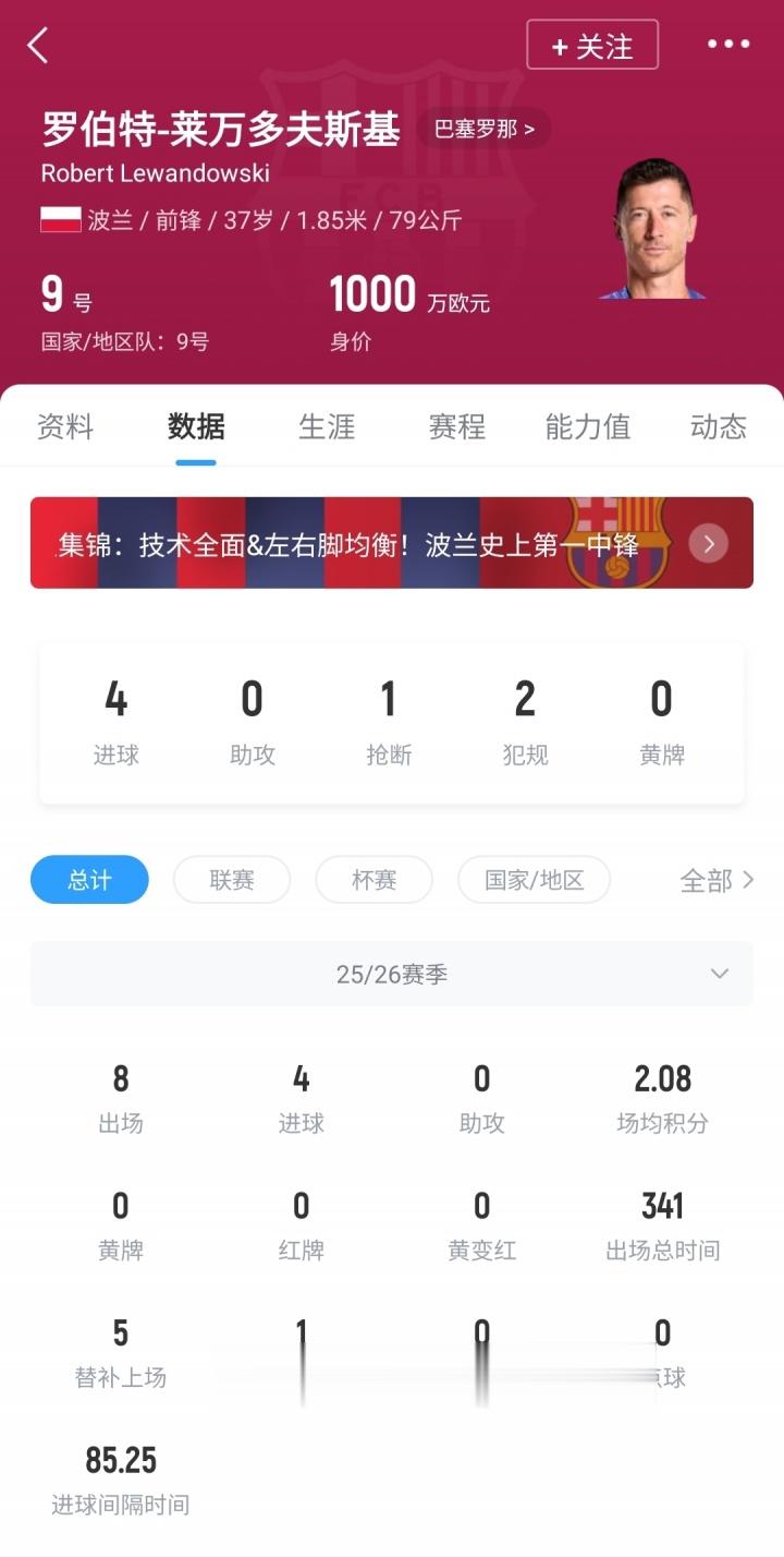 本赛季莱万代表巴萨出战8场比赛,打进4球。