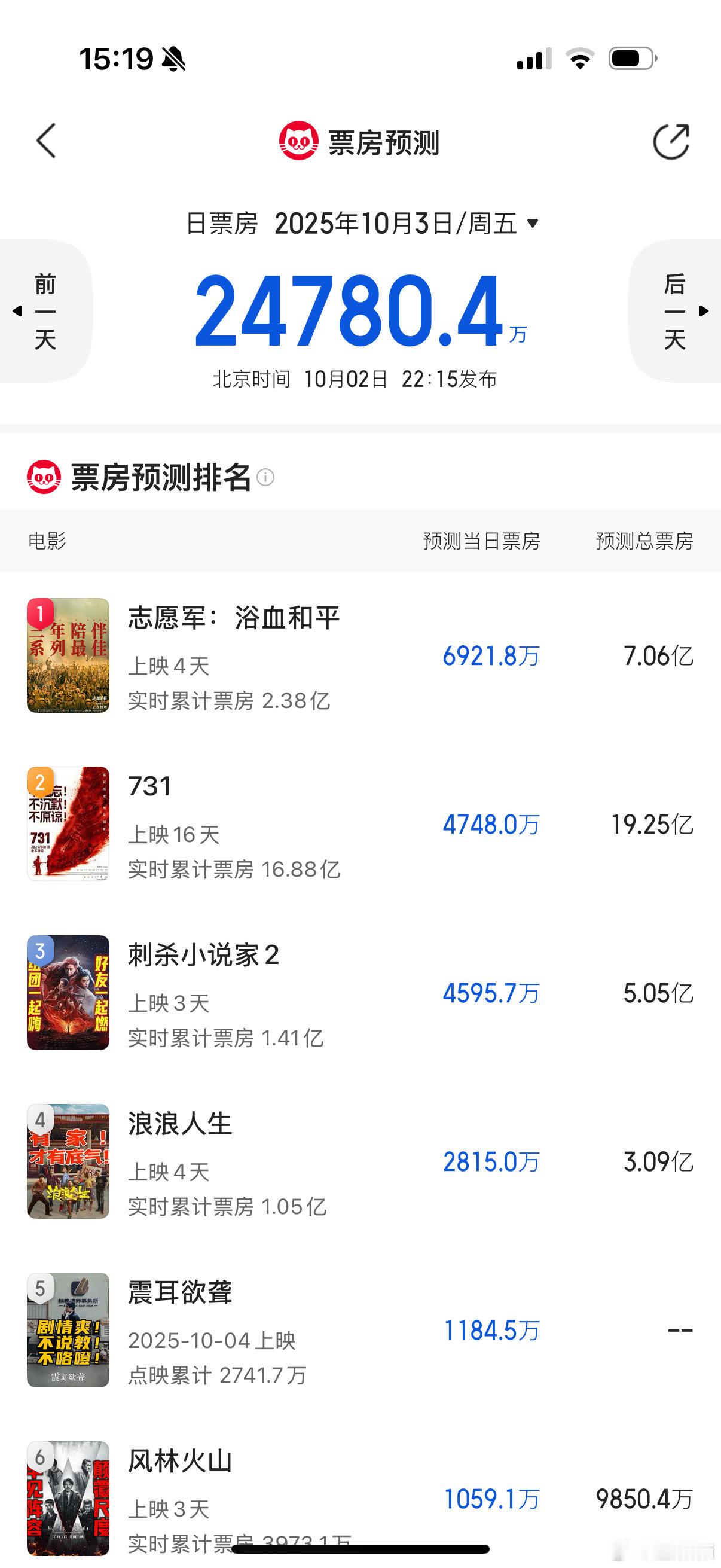 你们看震耳欲聋的口碑发酵了吧,预测票房一直在涨,昨晚预测今天票房1184w,现在