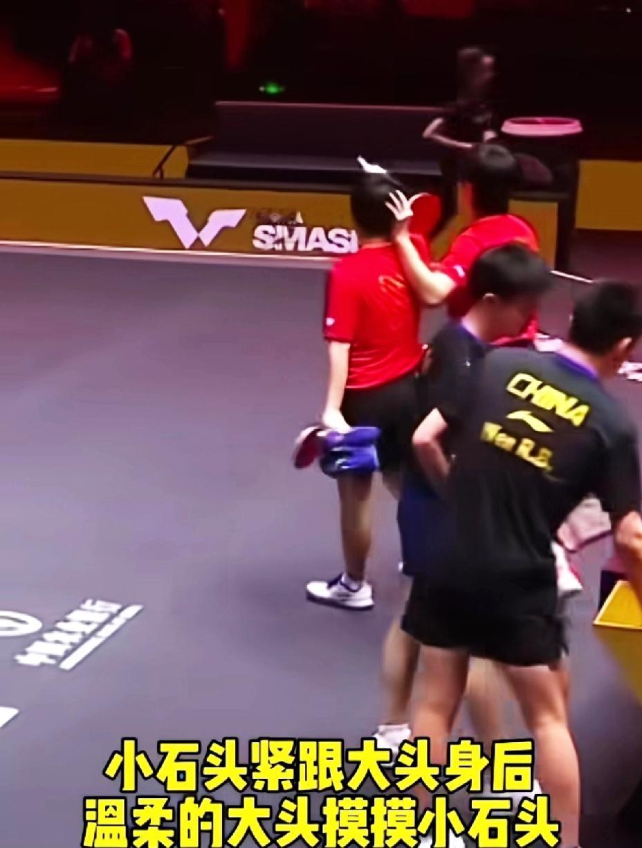 到底发生了什么? 王楚钦在男双采访的时候说出那些话, 林诗栋真幸福, 有王楚钦为他撑腰。 北京大满贯男双半决赛, 王楚钦/林诗栋对战黄友政/温瑞博, 这场比赛打得酣畅淋漓。 黄友政/温瑞博打得也相当精彩, 最终王楚钦/林诗栋3:1黄友政/温瑞博, 成功晋级决赛。 赛后看到王楚钦用手摸小石头的头, 像是在安慰他。 原来比赛过程中小石头丢了一个球, 有球迷大声喊,“林诗栋醒一醒, 你行不行?”之类的话。 王楚钦肯定是听到了, 所以赛后用手摸小石头的头以示安慰。 在采访的时候说, 你们可以支持自己喜欢的运动员, 但是不要去攻击其他的运动员。 王楚钦真是一个顶好的人, 他自己才是被骂得最多的那个人, 正因为自己淋过雨才想着给弟弟打伞。 他自己被网暴的体无完肤的时候, 却一声不吭, 可是他每次都会出来维护自己的队友, 甚至乒乓球整个团队。 小石头真幸福, 有王楚钦为他撑腰。 记得杭州亚运会和巴黎奥运会, 他还是躲在哥哥后面的弟弟, 现在瞬间变成国乒男队的大哥哥了。 (图片源自于网络)