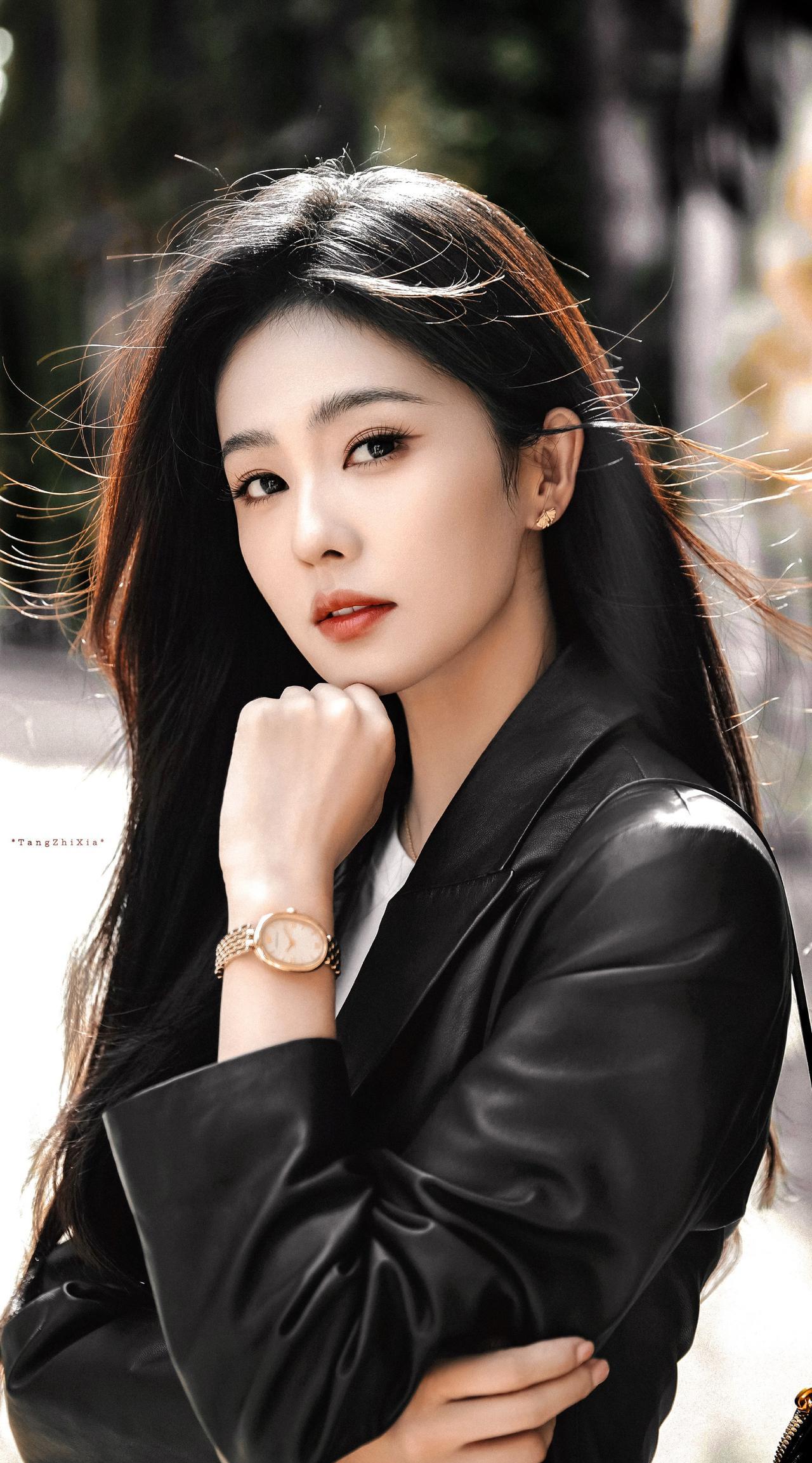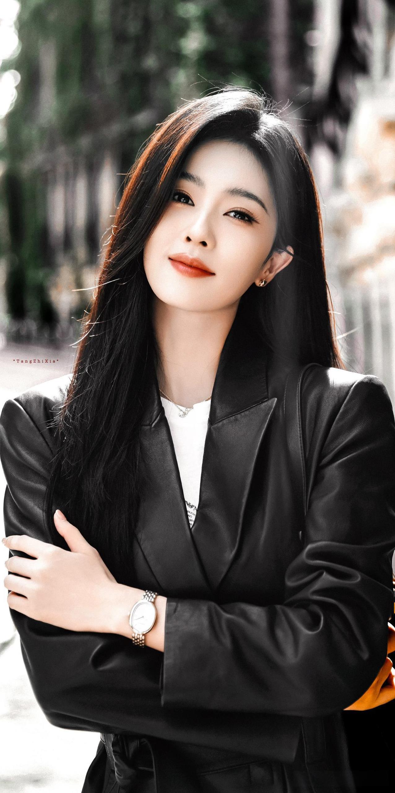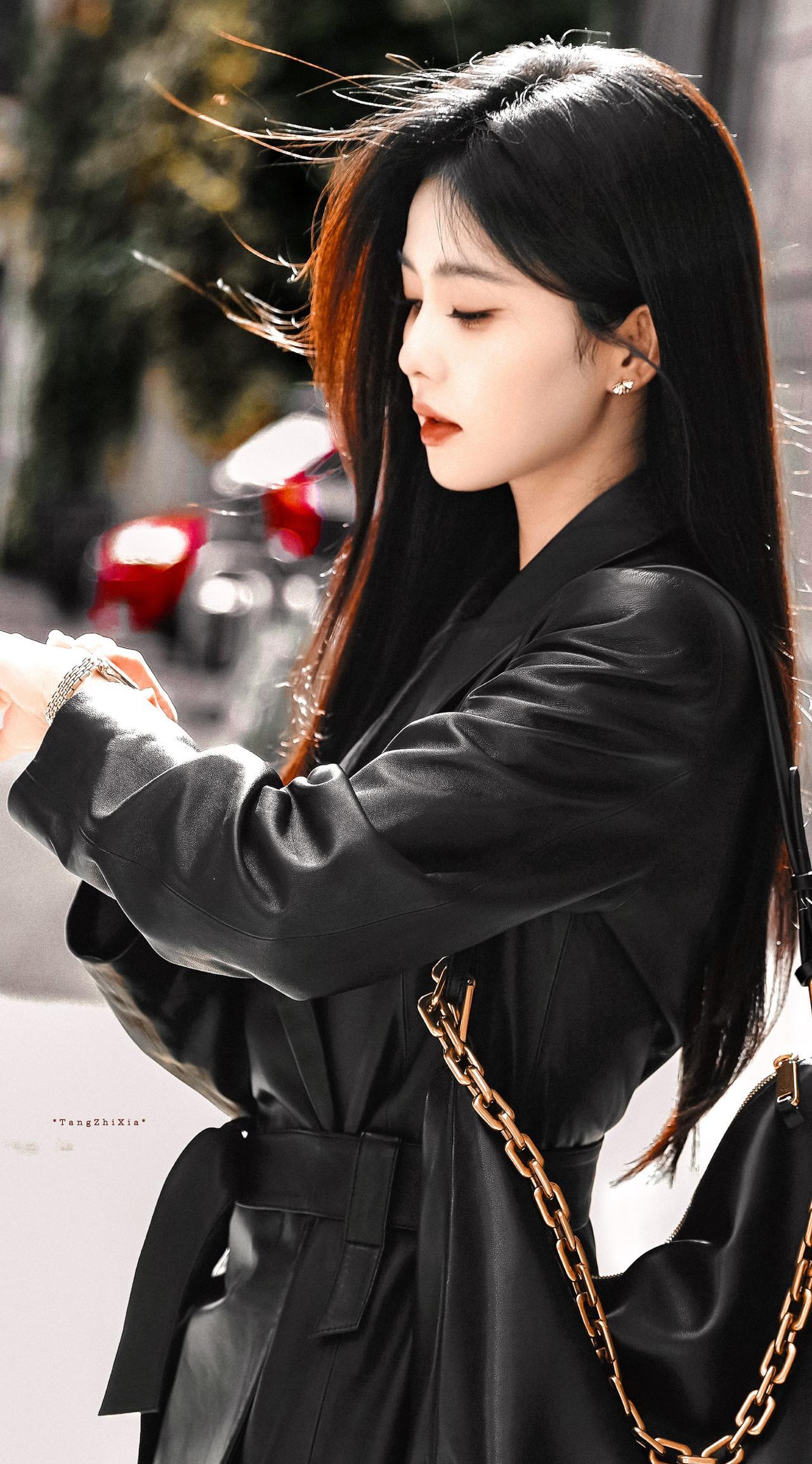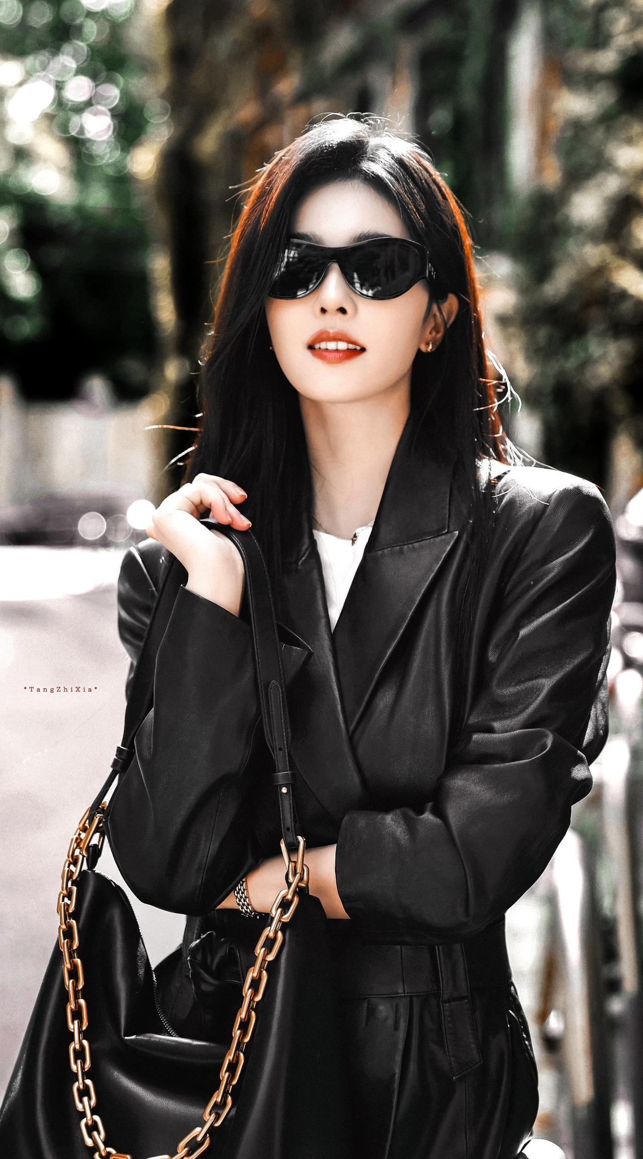 白鹿造型!黑色皮衣的硬朗与配饰的精致,打造潮流酷姐形象